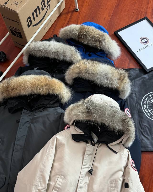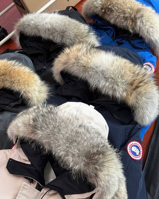 2 Mid-Range Version: Uses domestic 21-count polyester-cotton fabric, 50% national standard white duck down, and Canadian eastern coyote fur. Top-Tier Original Canada Goose Analysis: Analysis 1: Coyote Fur: We guarantee that all customers receive a fur collar that is a lighter gray color than the authentic product. Each coyote fur is 55mm long and 14mm wide, all made from first-grade light gray wild coyote fur from western Canada! Analysis 2: Trademark: We use custom-dyed embroidery thread, truly achieving 100% trademark replication, guaranteeing complete consistency with the original. The embroidery thread has zero color difference, and the entire map and letters are 100% accurate! We dare to guarantee that no competitor is more dedicated or professional than us!