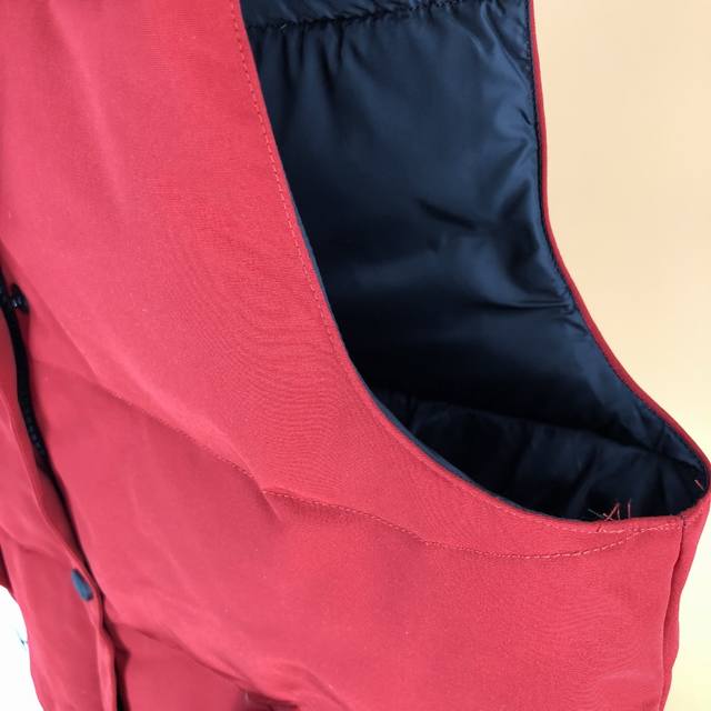 Women's Down Vest, Color: Red. Suitable for retail stores, Taobao, and physical stores. A trendy down vest for women, perfect for autumn and winter. Perfect for pairing with hoodies, T-shirts, shirts, or any other casual outfit. Features pure duck down, a unique stylish U-shaped hem design, waterproof fabric, and a YKK double zipper pull. High-definition real photos show a crisp and high-quality fit, easily compared to other soft and wrinkle-prone versions on the market. Size Reference: S: 155-160cm (80-95 lbs) M: 160-165cm (95-110 lbs) L: 165-170cm (110-125 lbs) XL: 170-175cm (125-140 lbs)