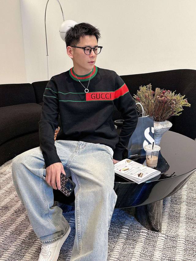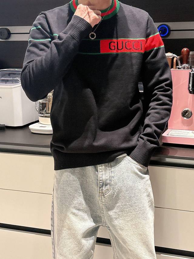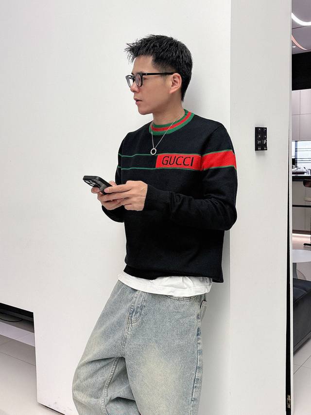Gucci 2025 Autumn/Winter Wool Blend Pullover Knit Sweater is a highlight, with details that accentuate its quality. The overall design is stylish and modern. The fitted cut and slightly fitted neckline make it look younger and more fashionable. The fabric is a custom-woven wool blend that is easy to care for, has a wool-like texture, and is comfortable and warm. It looks high-end while also having a good drape. Sizes M-3XL DDD