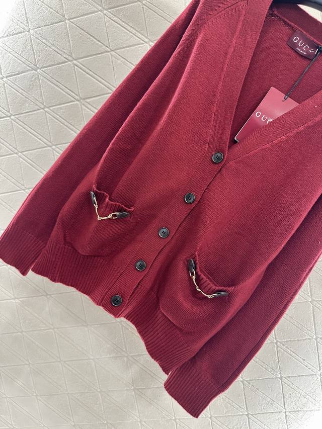 Gucc* 2025 New Arrivals Horsebit Pocket Knit Cardigan Custom Yb wool yarn woven