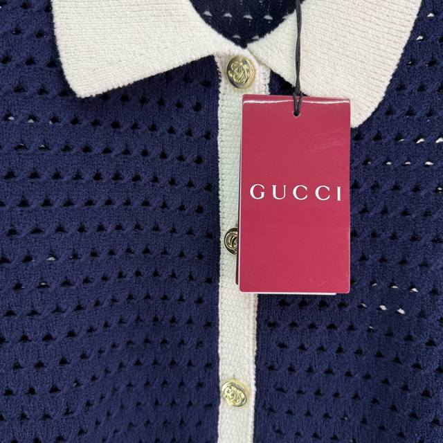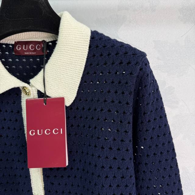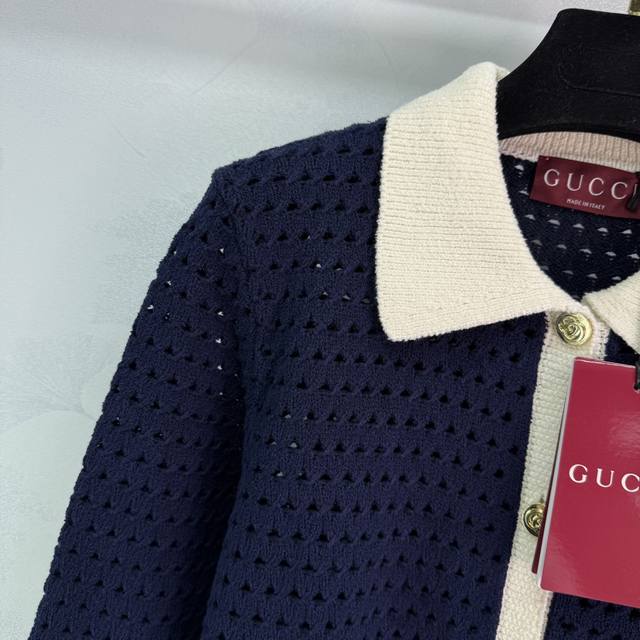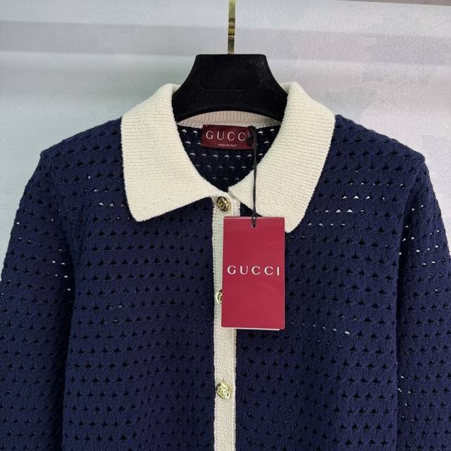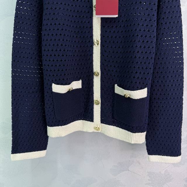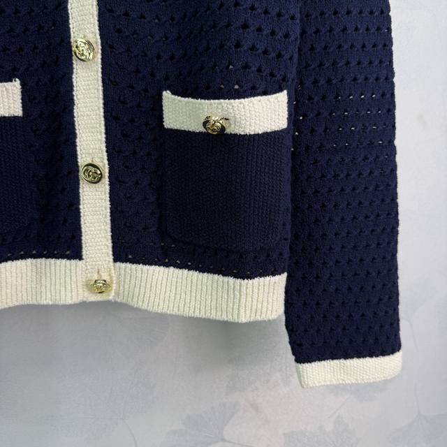 Gucc* 2025 Spring and Summer New Series! The official website synchronizes the contrast color hemming knitted cardigan! Customized cotton yarn weaving restores the texture and appearance. The lapel long-sleeved cardigan top is tailored with hollow hook flower decoration. The button is matched with the whole body white hemming design, which is different from the body and adds a fashionable tone, highlighting the brand's academic literary atmosphere. The double pocket button decoration is inclusive and slimmer. It is fashionable and versatile. The style is not picky about age and skin color. It is suitable for reducing age and fashionable retro style! 1 color 3 sizes Sml T226B.