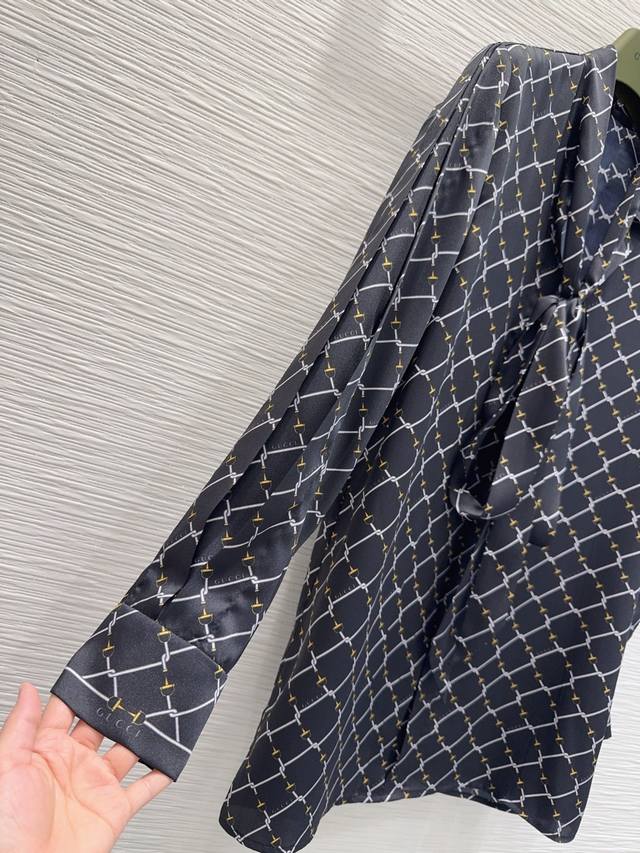 Gucc* 2025Fw New Shirt: Silky smooth fabric with a permeable finish, retro, stylish, understated yet luxurious! Versatile and flattering fit, custom-made technical fabric with meticulous craftsmanship. A must-have for sophisticated women! Highly recommended. Sizes: S, M, L; XL. S: Back length 75cm, Cuff 21cm, Bust 99cm, Sleeve length 60cm. (DDD)
