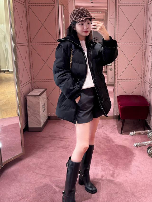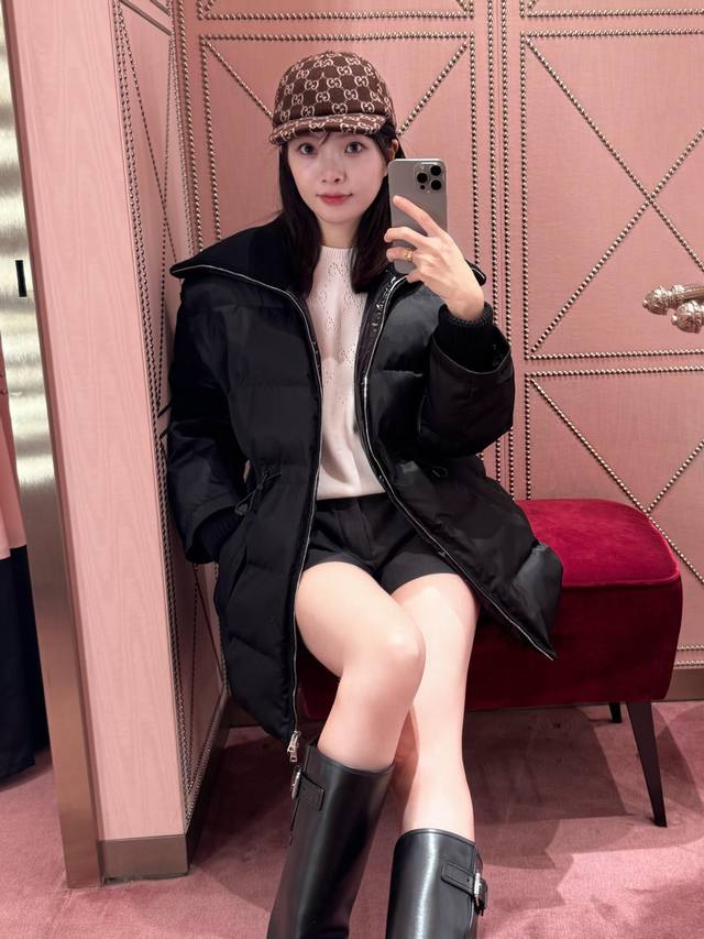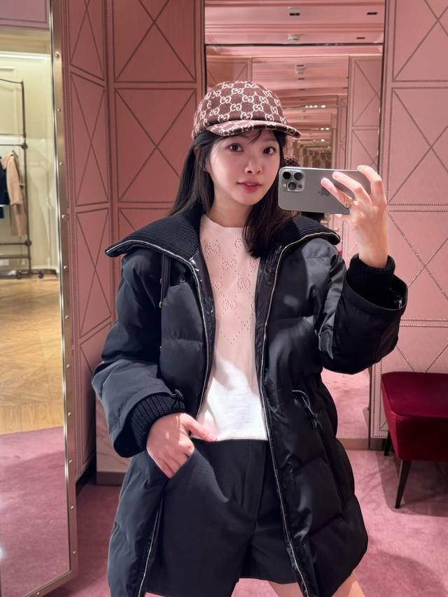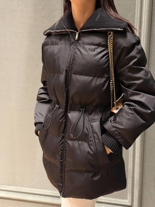 Gucc* 25Fw Autumn/Winter Limited Edition Lapel Drawstring Waist Down Jacket | Exclusive Yb Development! High-Quality Production! Made with high-density matte black nylon and wool knit ribbed lapels, windproof and splash-proof, easily shaken off dust; the invisible drawstring at the waist allows for both an oversized, relaxed look and an hourglass silhouette; filled with 90% white duck down, its loft is maximized, making you feel like you're being hugged by a cloud, effortlessly warm even in sub-zero temperatures. Available now in S, M, L, DDD sizes.