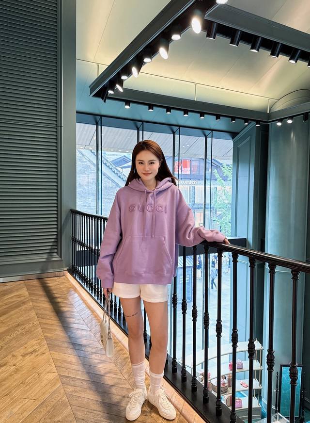 Gucc* 25Fw Early Autumn New Letter Embossed Logo Hooded Sweatshirt | Exclusive Yb Development! High-Quality Production! This purple hooded sweatshirt is absolutely stunning! The soft yet eye-catching purple tone instantly brightens up any outfit. The hooded design adds a casual feel, the 3D brand logo on the chest is exquisite and textured, and the loose fit is flattering for all body types. Pair it with denim shorts to easily create a casual yet stylish everyday look. Whether you're shopping or on a date with friends, it will make you stand out from the crowd~ Available now in sizes S, M, L, D.D