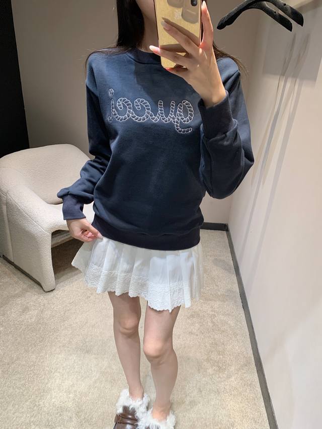 Gucc* 25Fw Early Fall New Letter Embroidered Crewneck Sweatshirt | Exclusive High-Release Edition! Clean and neat cut, dropped shoulders, loose and lazy style, thick and strong fabric, elastic and ribbed cuffs, a variety of wearable loose and comfortable, no-constraint feeling, full of casual cool style! Available now S M L