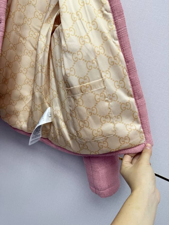 Gucc* 25Ss Autumn/Winter New Lace Collar Cotton Jacket with Double G Button Decoration, Coarse Cotton Fabric, High Quality, Single Color, Three Sizes Smlb808p DDD