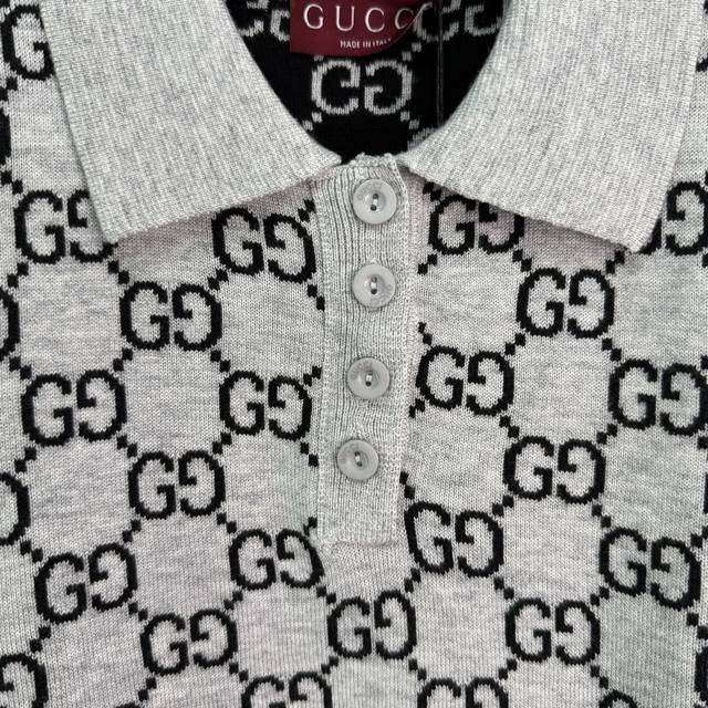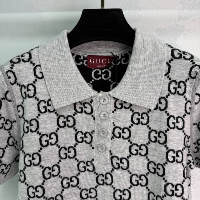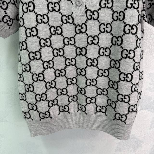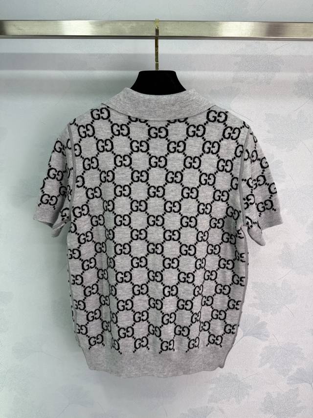 Gucc* New 2025 Early Fall jacquard knit lapel short-sleeve top! Custom-made wool knit material, comfortable, soft, and stretchy, with a lapel knit short-sleeve cut. Ribbed hems at the neckline and cuffs provide a comfortable, stretchy finish. Double G contrasting jacquard print accentuates the look while adding a cute and playful touch. The regular fit is smooth, accommodating, and stylish. A must-have for fall and winter fashion! 1 color, 3 sizes Sml