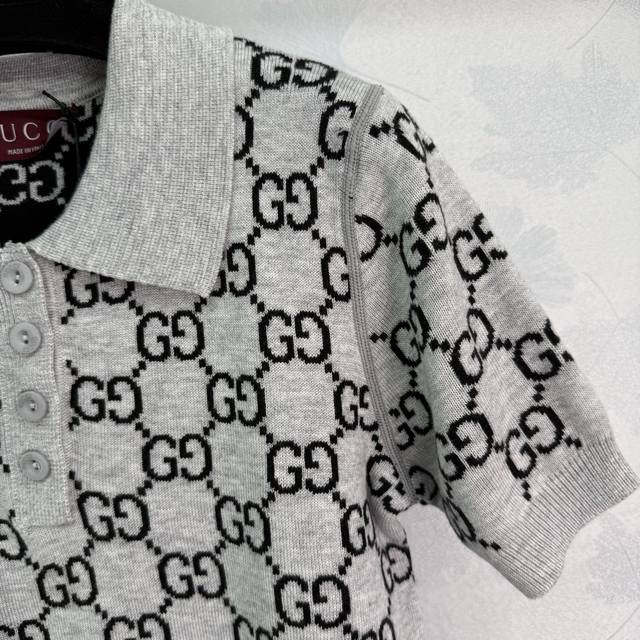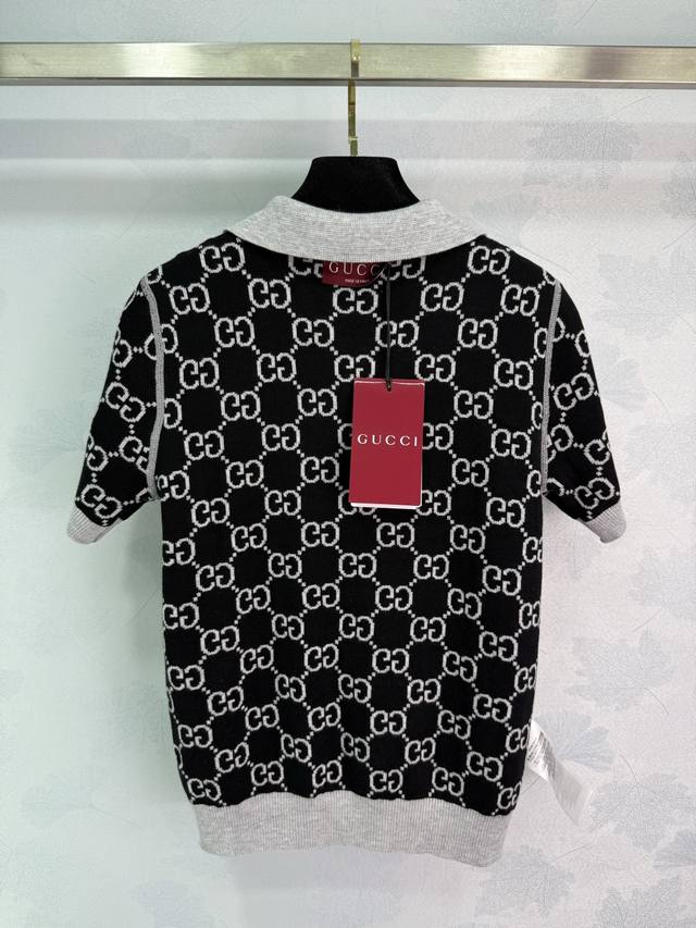 Gucc* New 2025 Early Fall jacquard knit lapel short-sleeve top! Custom-made wool