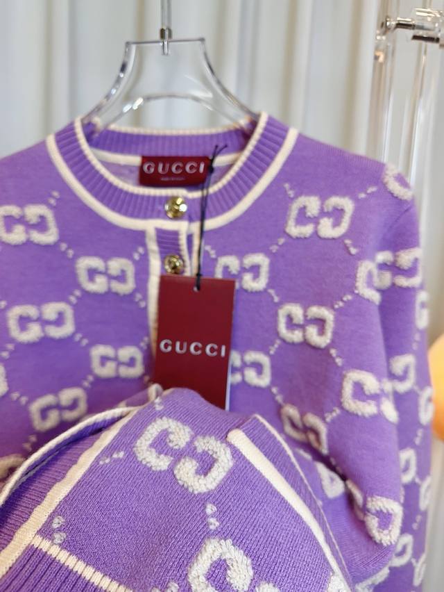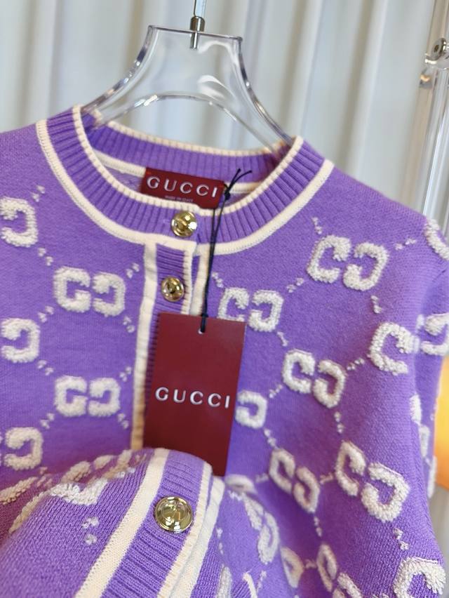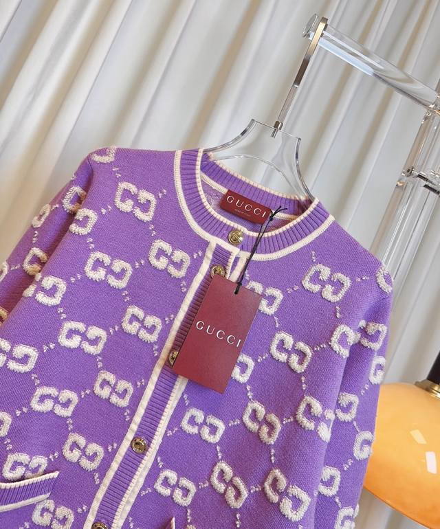 Gucc* New all-over logo wool cardigan, custom-made and knitted wool fabric with a fine texture and soft feel. Features an all-over 3D logo embellishment for an exquisite and fashionable look. A must-have for any stylish goddess. Can be paired with a short-sleeved top. Highest quality. Welcome to compare. Green Sml