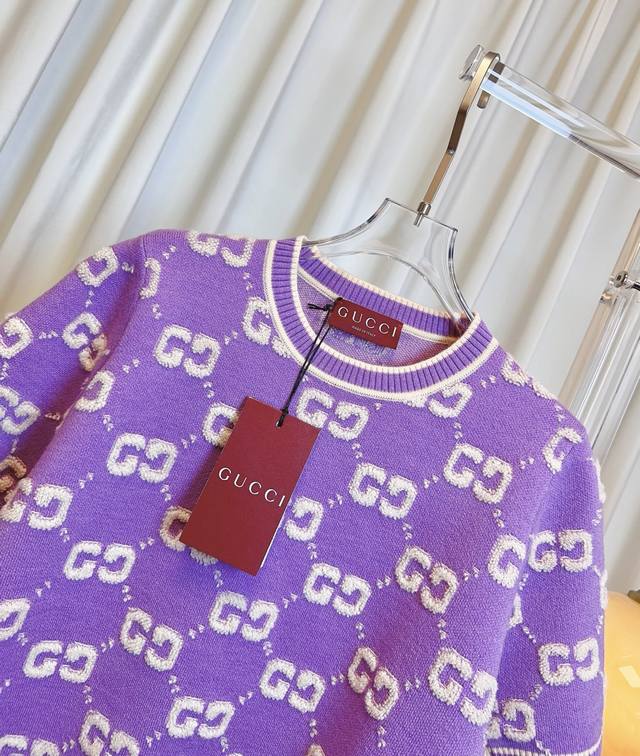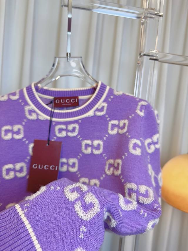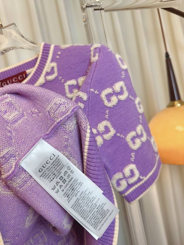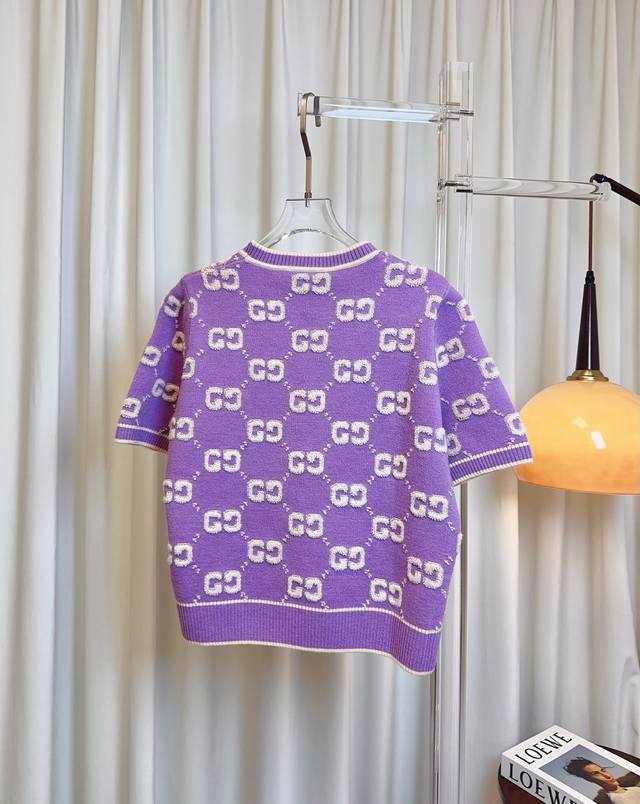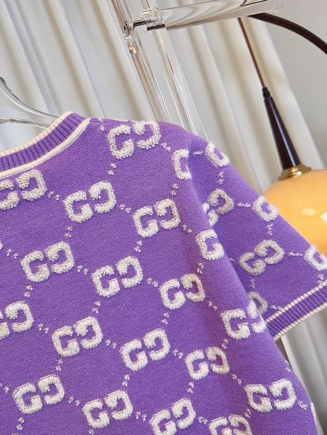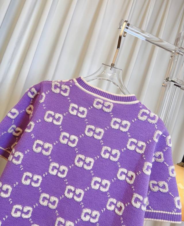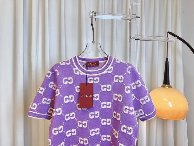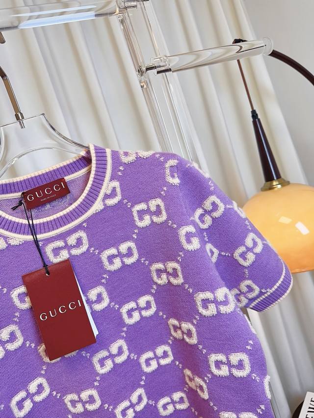 Gucc* New All-Over Logo Wool Short-Sleeve Top, Custom-Made, Wool Fabric with Excellent Texture and Soft, Delicate Touch. Features an all-over 3D logo embellishment, exquisite and fashionable