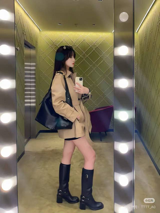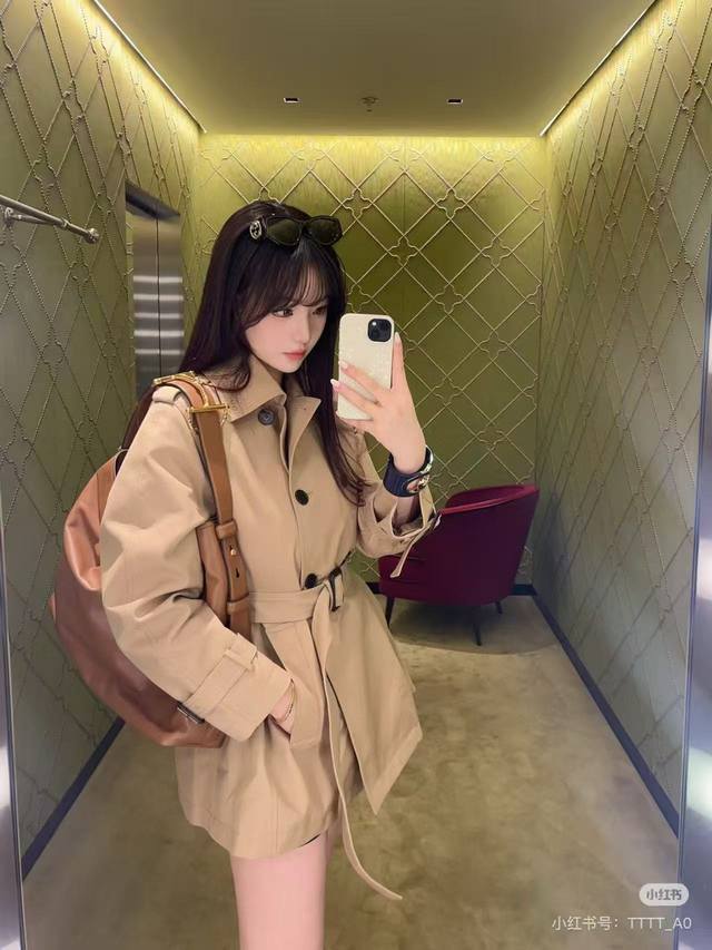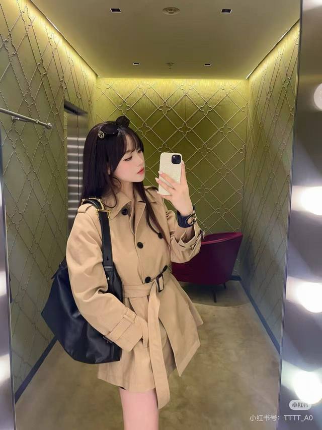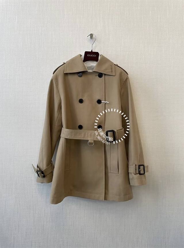 Gucc* New G brand custom button engraved letter double-breasted lapel embroidered logo logo stylish and chic, belted waist slimming short trench coat! Khaki, Size M: Shoulder width 43, Bust 106, Sleeve length 56, Length 73
