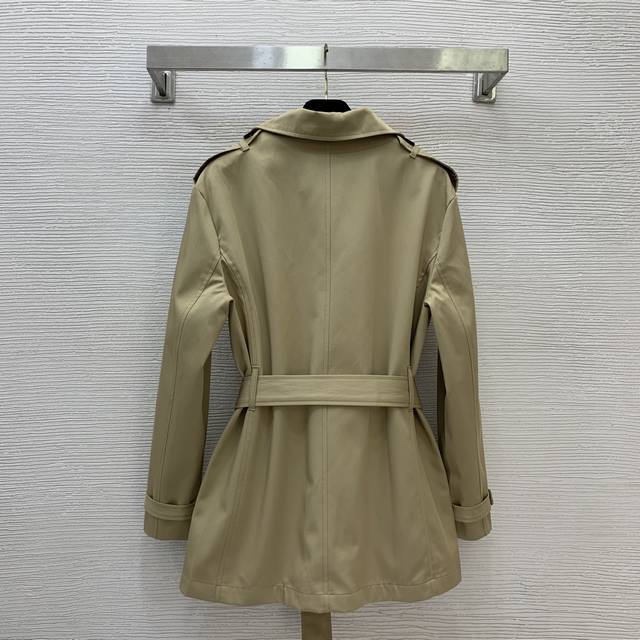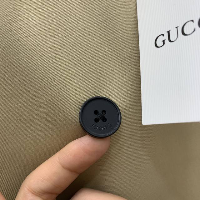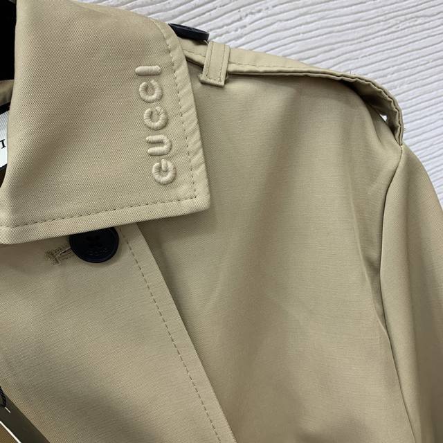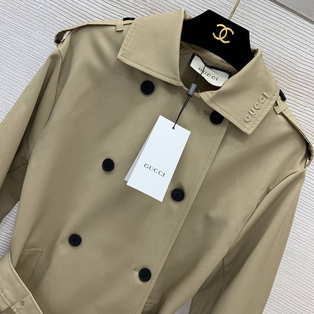 Gucc* New G brand custom button engraved letter double-breasted lapel embroidered logo logo stylish and chic, belted waist slimming short trench coat! Khaki, Size M: Shoulder width 43, Bust 106, Sleeve length 56, Length 73