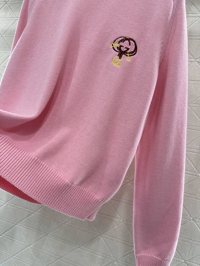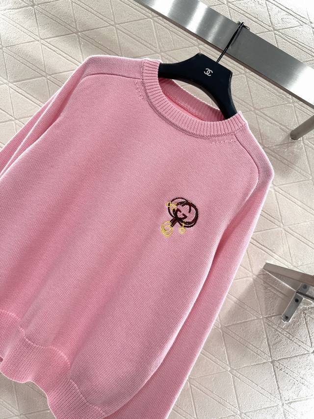 Gucc*2025 New Arrival Ddd Lunar New Year Embroidered Letter Logo Knit Sweater Ddd New Year's Collection # Custom cashmere and wool yarn, comfortable to wear, high-quality feel, round neck knit pullover sweater, double G letter logo on the chest, embellished with double G horsebit and other elements, color contrast adds layers, regular fit, stylish and fashionable. Custom fabric and accessories, look for the high-quality version, pink DDD