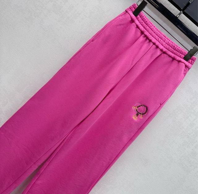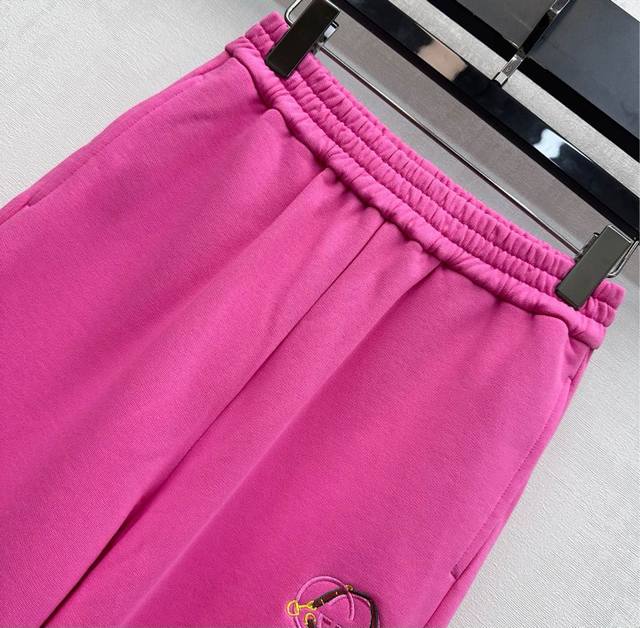 Gucc*2025 New Arrival: New Year's Greeting Letter Logo Straight Leg Trousers, Custom Made with Imported Original Cotton, Breathable, Comfortable, and High-Quality. The waist and hips are adorned with double G letter embroidery logos and horsebit elements, showcasing the brand's style. Color contrasts add a sense of layering to the design. The fabric features an elastic waistband. The straight leg trousers have a stylish and fashionable cut. New Year's Greeting Series DDD High Version 2 Colors DDD
