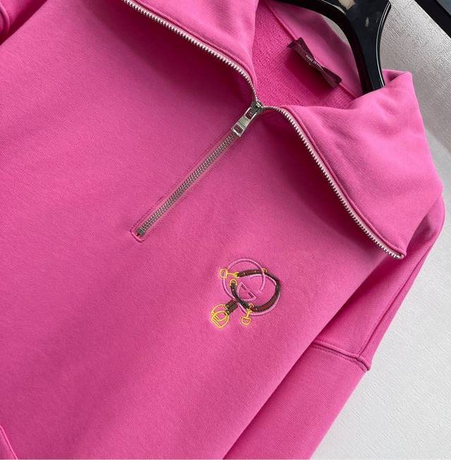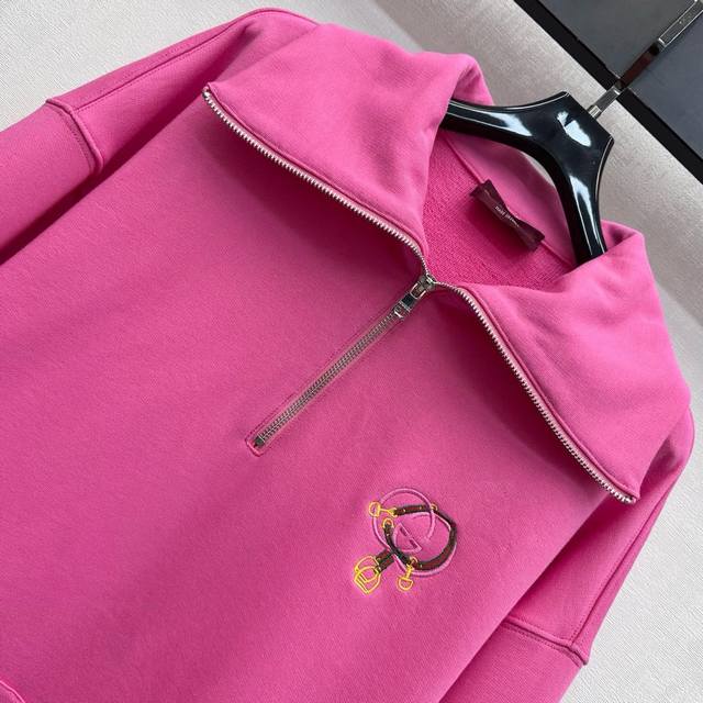 Gucc*2025 New Arrival: New Year's Letter Logo Lapel Sweatshirt, Custom Made with Imported Original Cotton, Breathable, Comfortable, and High-Quality. Adorned with a double G embroidered logo on the chest and a horsebit element, showcasing brand style. Color contrast adds a sense of layering to the design. New Year's series, high-quality DDD sweatshirt. Loose-fitting lapel sweatshirt cut, stylish and fashionable.