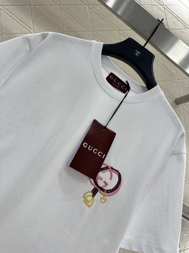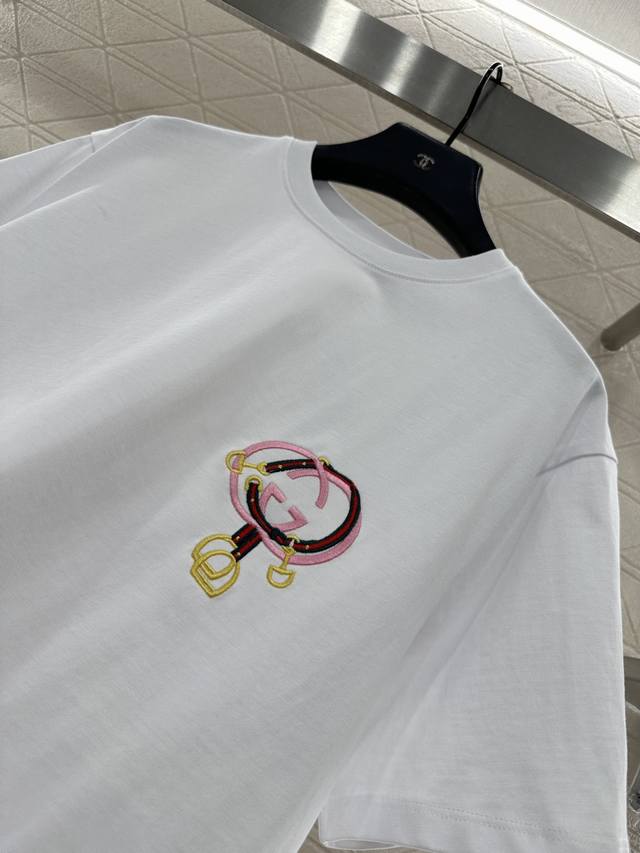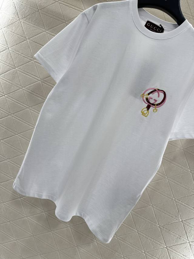 Gucc*2025 New Arrival Ddd New Year's Round Neck Logo Embroidery Ddd New Year's Series #Custom Yb Made of pure cotton, delicate texture, comfortable and breathable, loose short-sleeved cut, highlighting the brand style. Made of pure cotton, with a high-end sheen. The embroidery process reproduces the letter logo and metal ring buckle pattern on the chest. Refreshing and youthful, loose fit, relaxed and fashionable. Customized fabrics and accessories, look for the high-quality white version. DDD