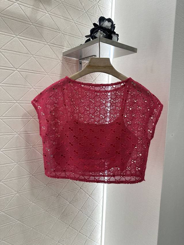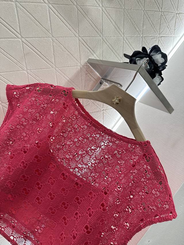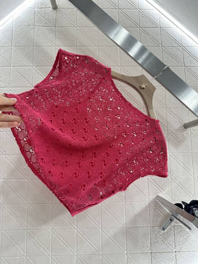Customized Yb twill cotton jacquard embroidery presents a three-dimensional double G letter texture. High-end and stylish. Round neck sleeveless hollow top with lining. Wear it with a layered effect. Fashionable and noble. Match it with a mid-length skirt from the same series to accommodate the leg lines and add fashion. A must-have item for daily commuting. Customized surface and accessories. Look for the high version of the 2-color suit