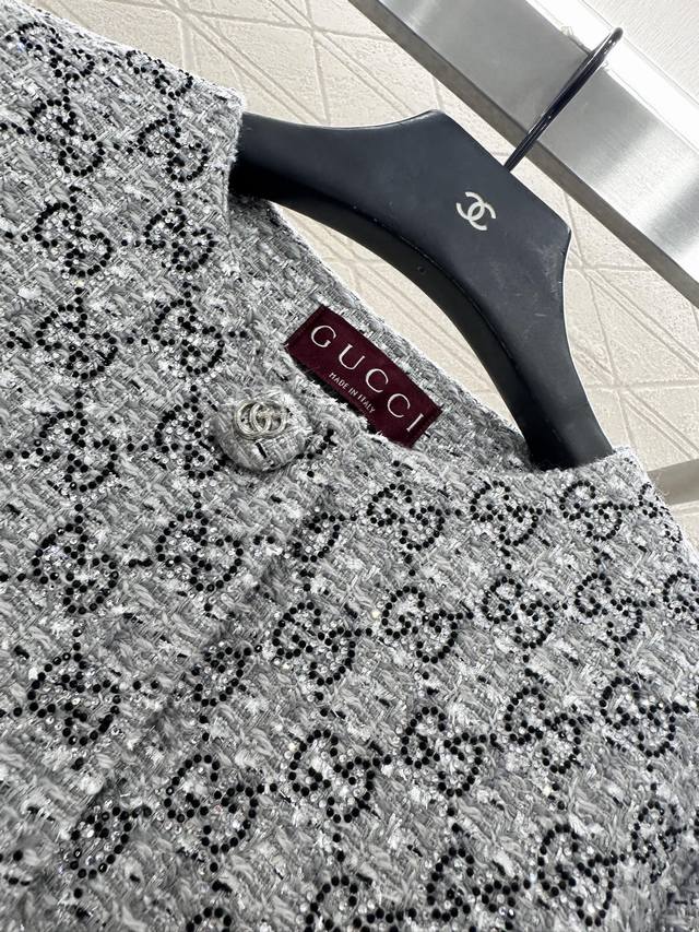 Gucc*2025 New Arrivals Hot Diamond Round Neck Dress Jacket and Skirt Set Custom