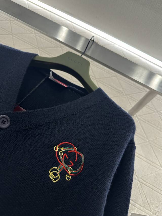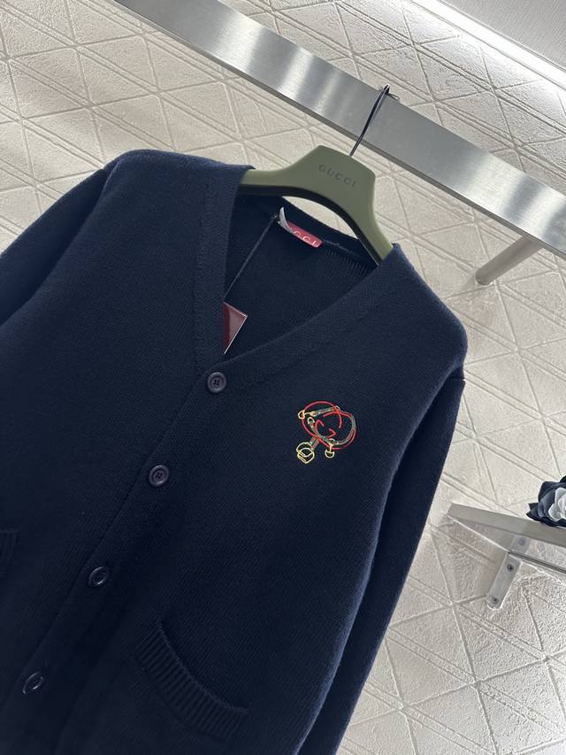 Gucc*2026 New Arrival Ddd Lunar New Year Logo Crochet Knit Cardigan Ddd New Year's Series # Custom Yb cashmere and wool yarn, comfortable to wear, rich texture, V-neck knit cardigan cut, button-down opening adjustment, contrasting yarn interweaving on one side of the chest presents a three-dimensional letter logo horsebit shape, ribbed edging and regular loose fit, relaxed and stylish to wear. Custom fabric and accessories, look for the high-quality version, 2 colors: black. DDD