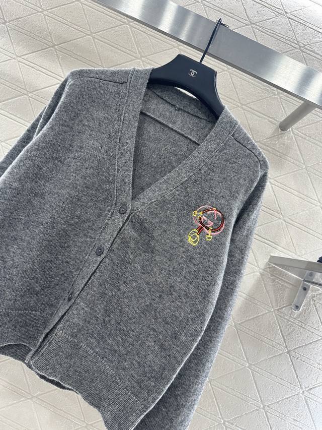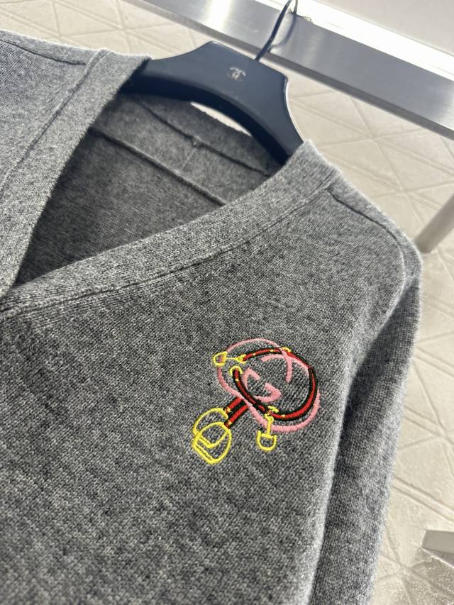 Gucc*2026 New Arrival Ddd Lunar New Year Logo Horseshoe Button Knit Cardigan Ddd New Year Limited Series #Custom Yb cashmere and wool knit material, fine knit, clear wool texture, comfortable and skin-friendly, V-neck cardigan cut, single-breasted round button closure, ribbed cuffs and hem, elastic and comfortable to wear, classic double G chain buckle and crochet decoration on the chest, rich design layering, regular short style, relaxed and fashionable fit. Custom fabric and accessories, please look for the high-quality version, 2 colors: red and gray. DDD