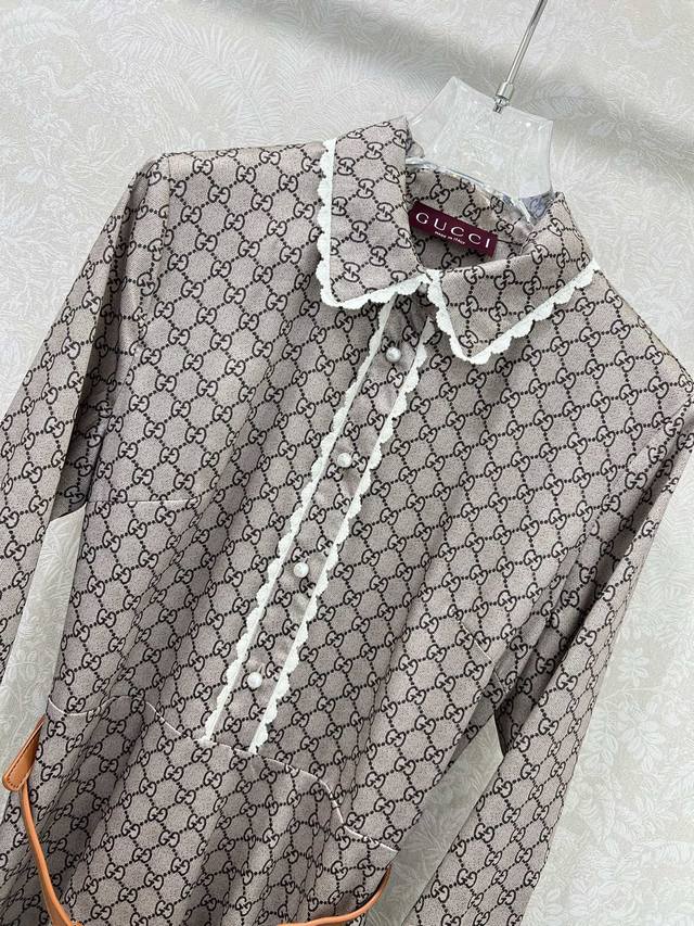 Gucc*25 New classic Double G logo print and lace blouse dress. The classic pattern will never go out of style. This sweet and elegant dress is fashionable and easy to wear. The custom horsebit belt at the waist makes it easy to create a stylish look. The imported fabric is super comfortable! The ladylike style is elegant and sophisticated! ! A must-have for everyone! A wardrobe essential for everyone. Available in three sizes, Smlb