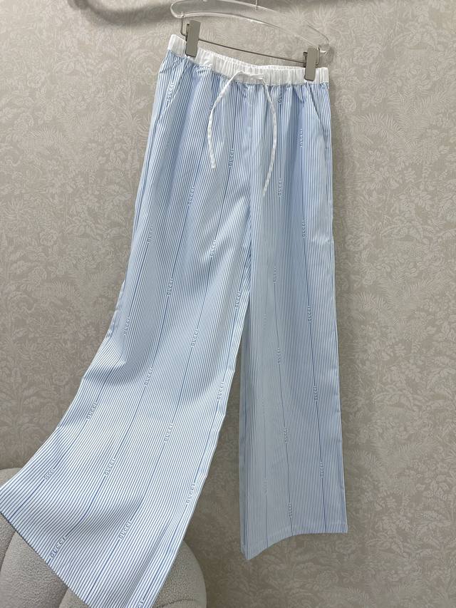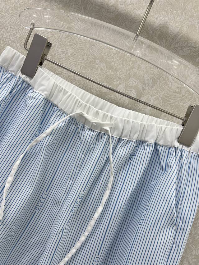 Gucc*25 New striped wide-leg pants! Contrast color drawstring waistband, contrast color simple logo embellishment, casual loose and slim style! Add the finishing touch of the double G logo, easily create a delicate and energetic, lazy and comfortable effect, no matter how you wear it, you can be stylish, simple and generous 2 colors 3 sizes Sml