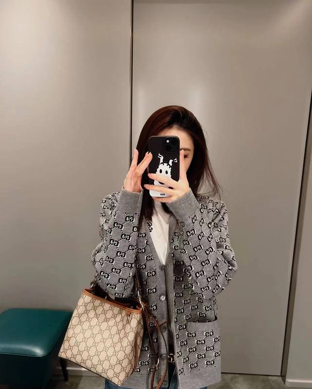 Gucc*25's limited-edition autumn/winter collection features a knitted cardigan w