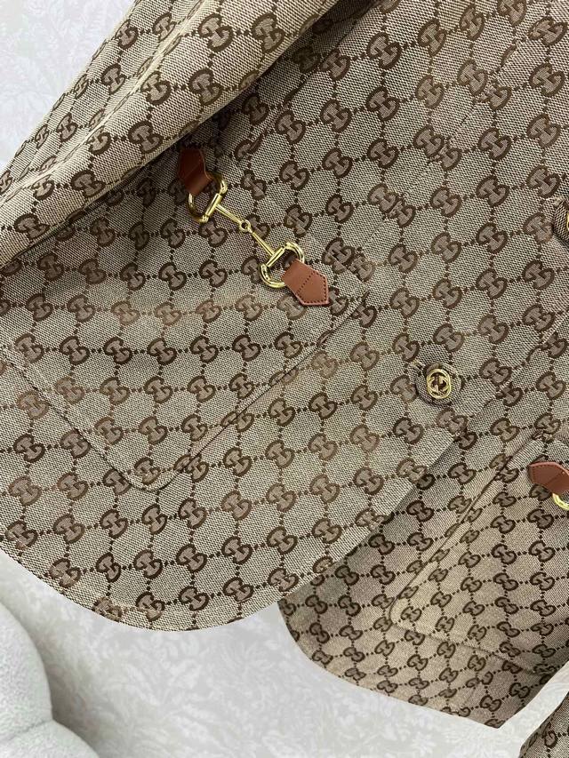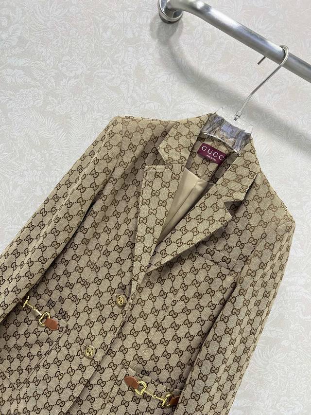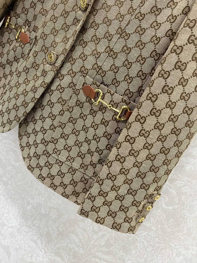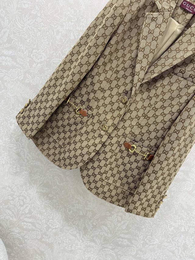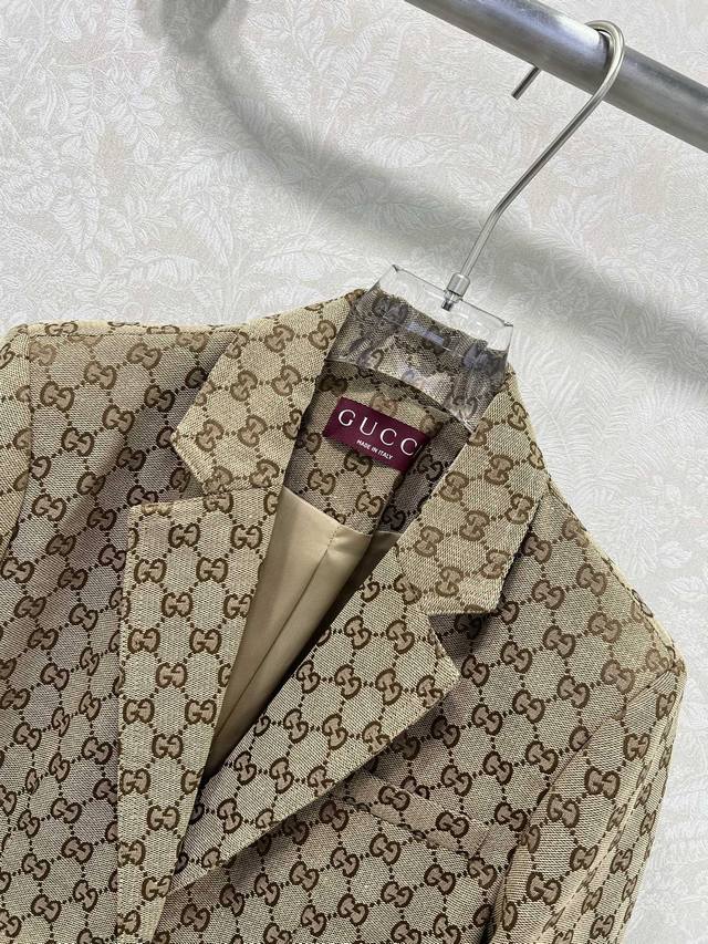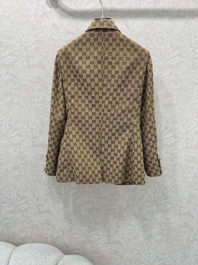 Gucc*25's new lapel jacquard blazer features a striking, stylish Double G jacqua
