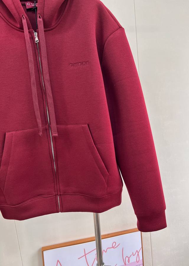 Gucci 2025 New Hooded Drawstring Sweatshirt Jacket, custom-made imported air-cotton material, warm and comfortable for autumn and winter, crisp and stylish. Features a hooded zip-up design for easy on and off, adjustable drawstring, and an embroidered brand logo on the chest for added personality, showcasing the brand's positioning and enhancing its quality. A perfect choice for everyday casual wear, sophisticated and fashionable. Custom-made fabric and accessories, complete with tags, unisex style, bulk order available. Sizes S, M, L, XL. Code G. DDD