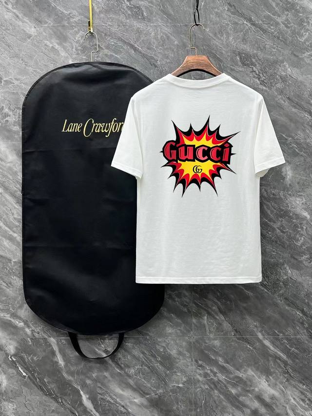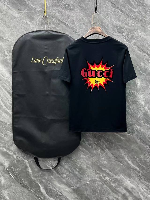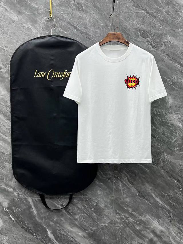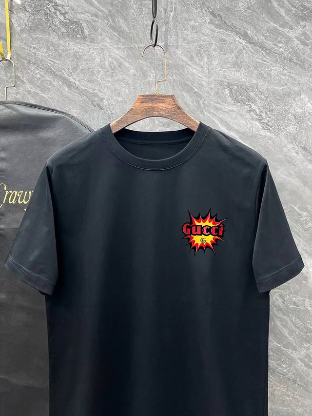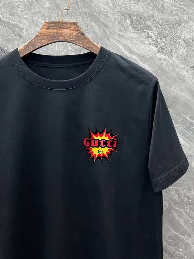 Gucci# 2025 Spring and Summer New Release, the latest short-sleeved round neck T-shirt, high-end custom design, avant-garde and fashionable! Brand Logo, heavy craftsmanship design, high-end customization, 250 grams of Xinjiang long-staple cotton fabric. Soft to the touch. Comfortable to wear. Exquisite sewing at the counter level. Fine workmanship. The upper body effect is invincible and handsome! A must-have item for men! Color: black. White!