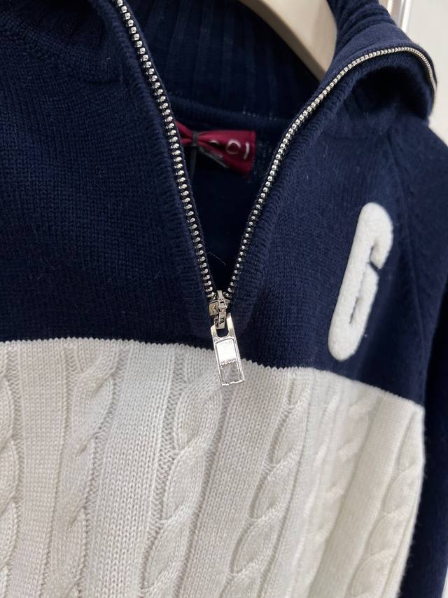 Gucci classic woven cable knit collared top. There are countless beautiful clothes, but classic sweaters are the best! It has a preppy vibe~ The navy blue color is very flattering and super girly. This classic bestseller continues its popularity!! 100% pure wool, top-quality molded and custom-made hardware logo, full of high-end feel. All three tags are complete. Perfect for layering in winter and wearing as a cardigan in spring and autumn. Extremely versatile, a must-have for everyday wear, outings, and travel. Don't miss it if you like it! High-quality version already shipped! All three tags are complete, bulk shipment available. Sizes S, M, L, DDD. Code DDD.