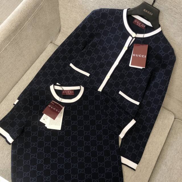 2025 Early Fall collection artfully blends diverse textures and exquisite details. Gg jacquard fabric and exquisite details combine to celebrate the changing seasons and experience the beauty of the four seasons. This top is ingeniously embellished with an all-over Gg pattern and paired with white contrast piping for an added touch of sophistication.