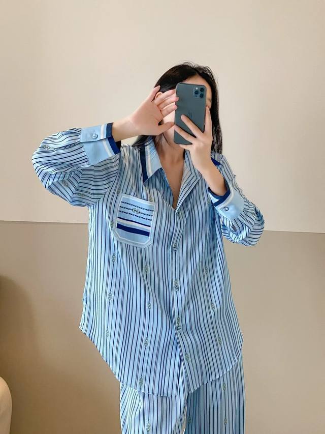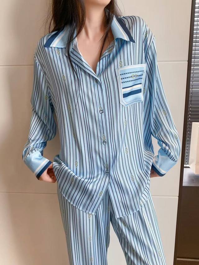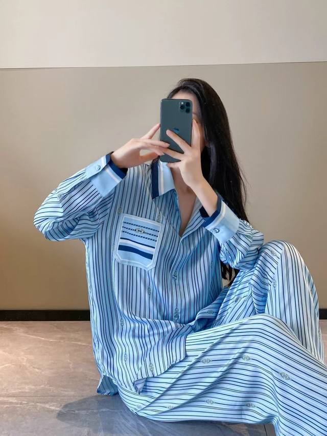 Gucci New Autumn/Winter Pajamas Original High-End New Product Pajamas Casual 2-Piece Set Long Pants Long Sleeves Imported Silk Satin Fabric Lined Edges Soft to the Touch Super Cool Super Beautiful Super Comfortable Elegant and Luxurious Style Can Also Be Used as a Fashionable Casual Set Extremely Fashionable Blending Fashion and Exquisite Style Loved by Many Celebrities ML XL DDD