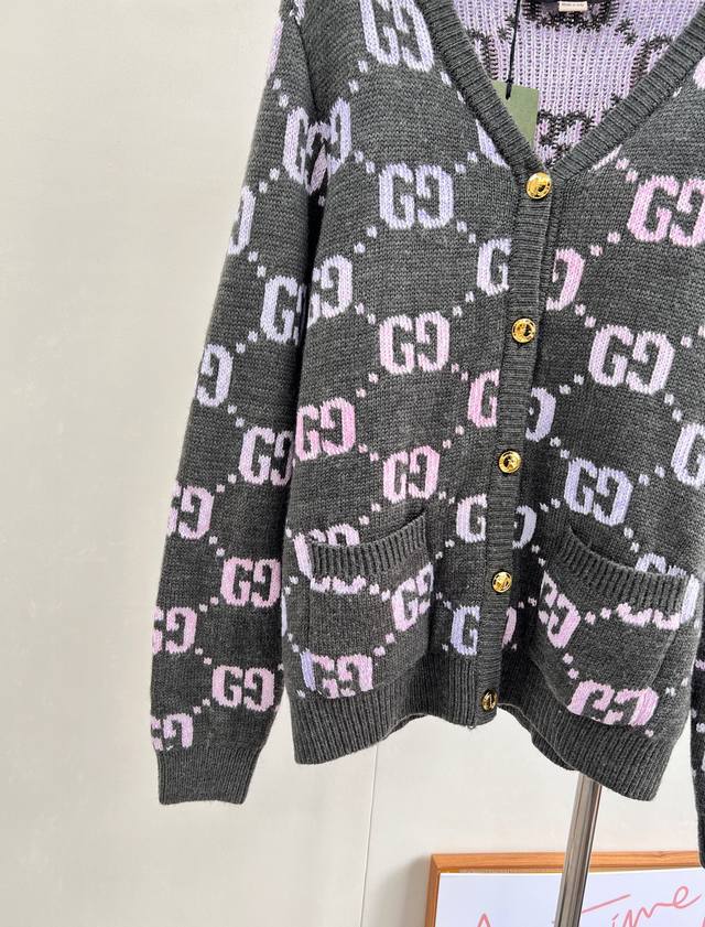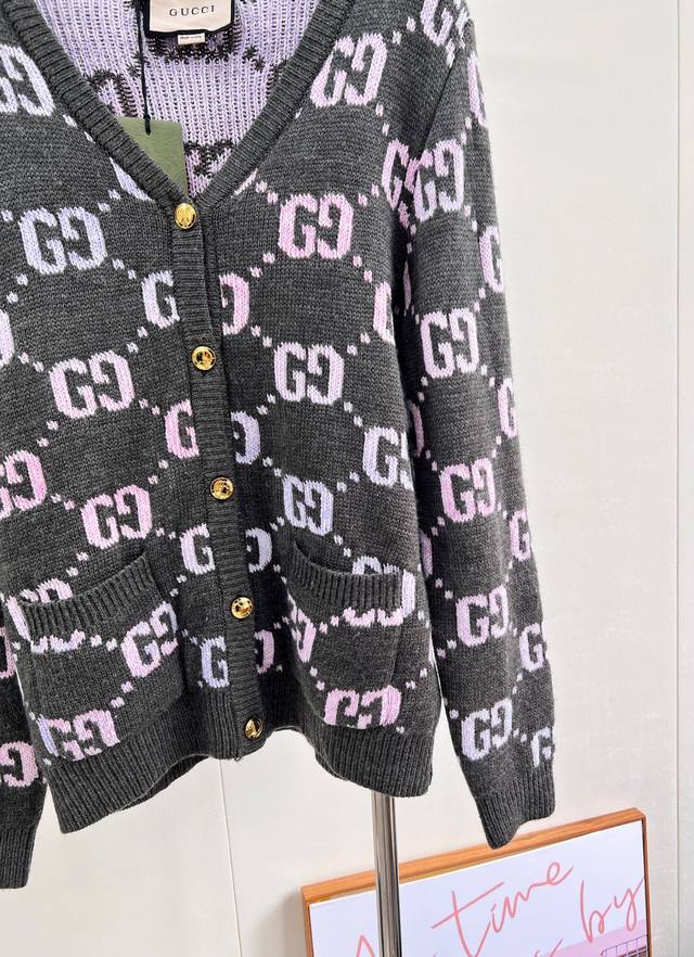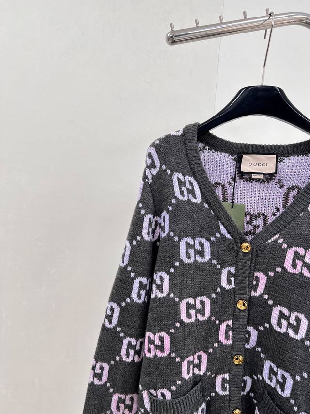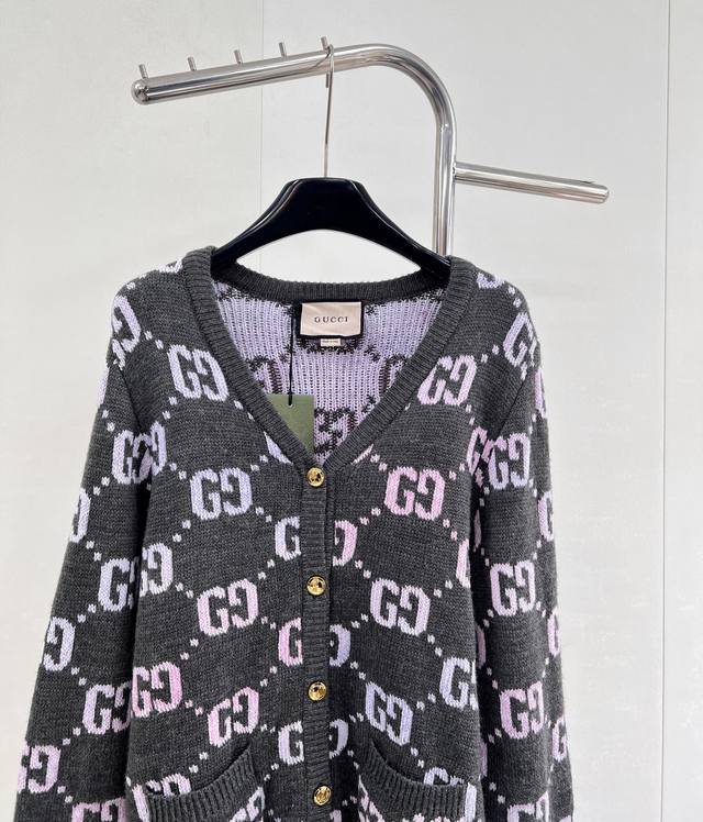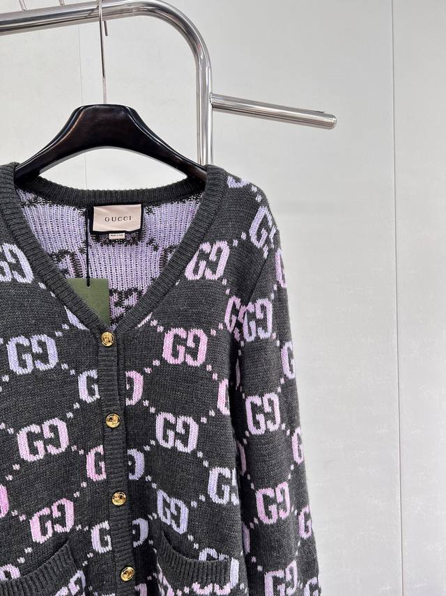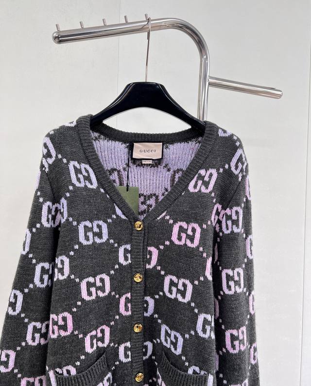 Gucci's Double G monogram intarsia wool cardigan, in a pastel hue, adds a touch