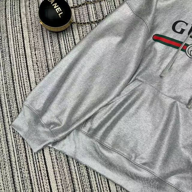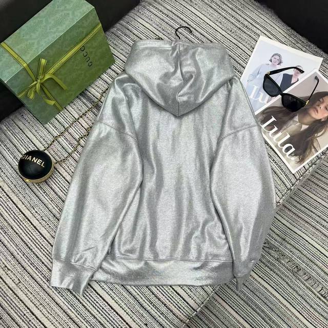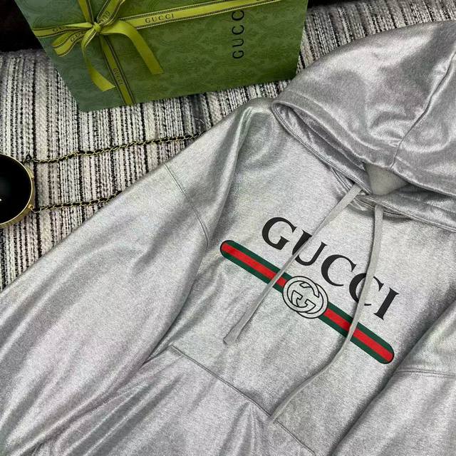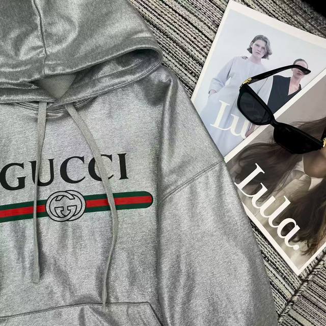 Highly recommend Gucc* 25Fw's new early fall letter-printed silver-stamped hooded sweatshirt! Exclusive high-end edition! The loose-fitting hooded sweatshirt highlights the brand's style. Made from heavyweight cotton, it drapes beautifully for a slimming effect. The entire garment features a tech-smooth gray-silver hue with a visible pearlescent sheen. The chest is printed to create a vibrant color palette, while contrasting colors create a three-dimensional brand logo. Variant fonts enhance brand identity, creating a stylish and sophisticated look. Stylish and relaxed, it looks great worn alone or as an inner layer. Available now: S, M, L, D, D