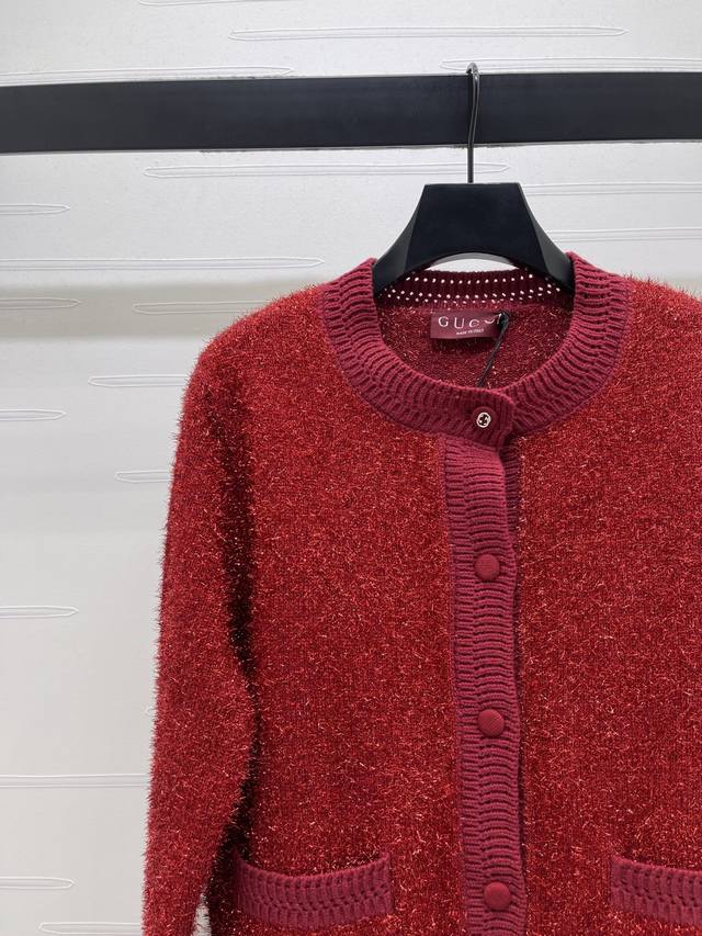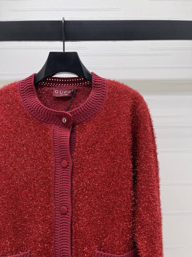New Arrival! High-end Original Quality GUCCC* 2026 Early Spring Collection! Silver Thread Knit Cardigan! Custom-made imported yarn showcases the brand's personality and highlights a sophisticated look. The elastic waistband throughout adds a touch of refinement and is flattering for all body types. The silver threads subtly accentuate the relaxed yet luxurious and fashionable style, making it a top choice for all seasons! Available in 2 colors! Sizes SM-L3! High-quality bulk order A706B400C DDD