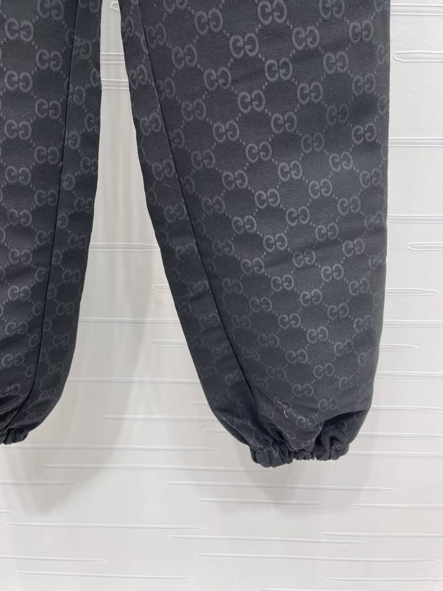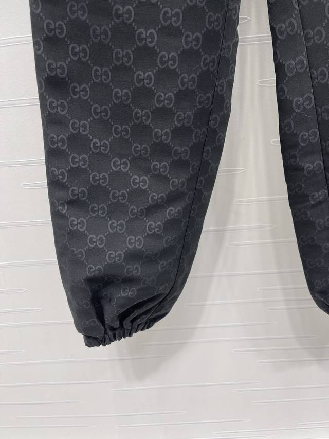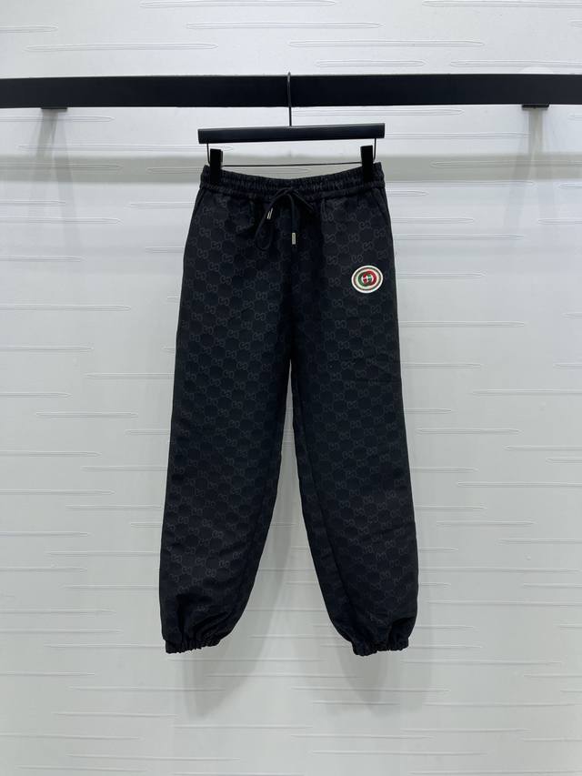 New Arrival! High-Quality Original GUCCC 2025 Autumn/Winter Collection! Jacquard Casual Drawstring Jogger Pants! Made with custom imported jacquard material, the texture is delicate, comfortable, and easy to wear. The casual jogger fit features an elastic waistband with adjustable drawstring, flattering the figure and easy to put on and take off. Embroidered GG patches on the waist and hips contrast with the all-over double G pattern on the body, adding vibrancy to the overall look. The jogger cuffs accentuate the figure, making them a perfect choice for everyday casual wear! Available in 2 colors! Sizes SM-L3! High-quality bulk order.