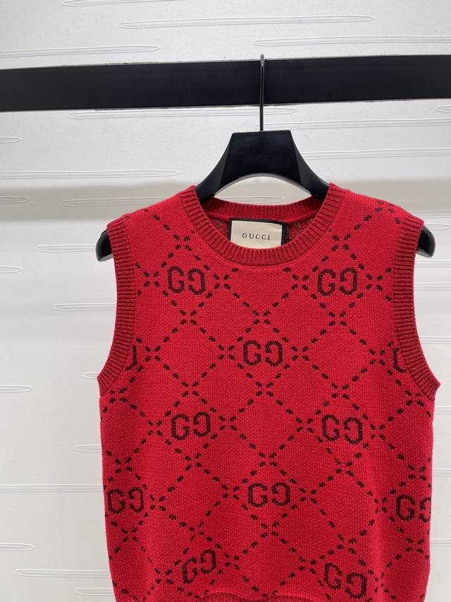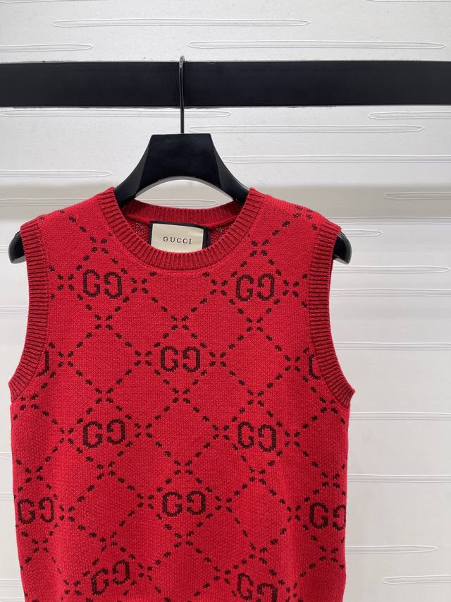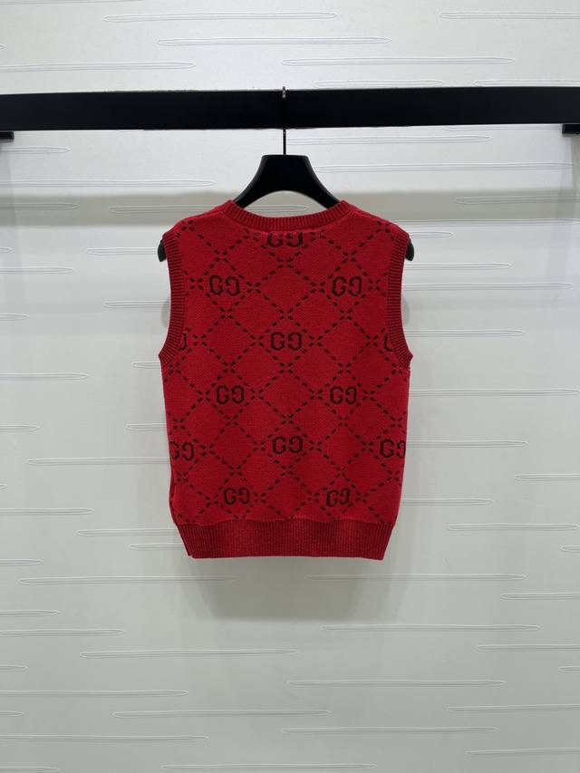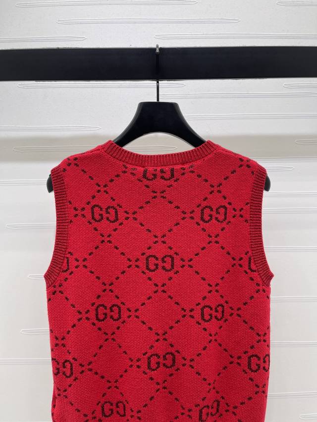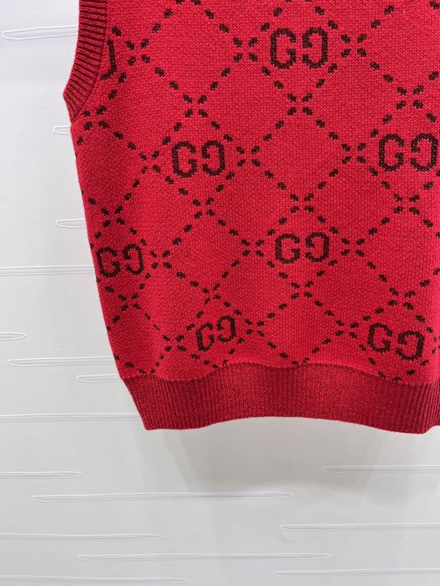 New Arrival: Original High-Quality GUCCC*2026 Early Spring Collection! GG Crew Neck Knitted Vest! Custom-made imported knitted material, high-quality garment with double G letter jacquard pattern throughout. Ribbed cuffs and hem, elegant and retro style, classic fit, perfect for casual or work occasions! 1 color! Sizes SM-L3! High-quality bulk order A706B350C DDD