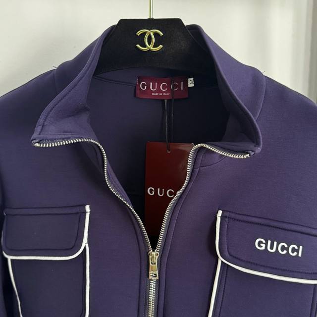 Style No. 20255375 Gucc* new space cotton suit, chest letter pocket stand colla