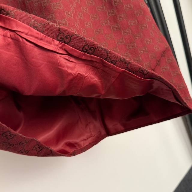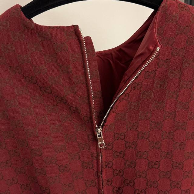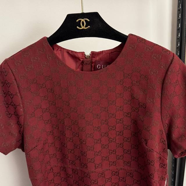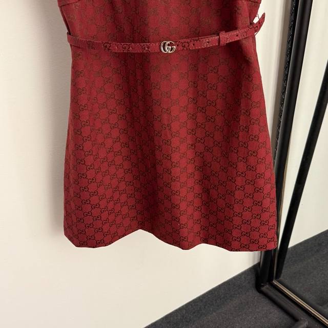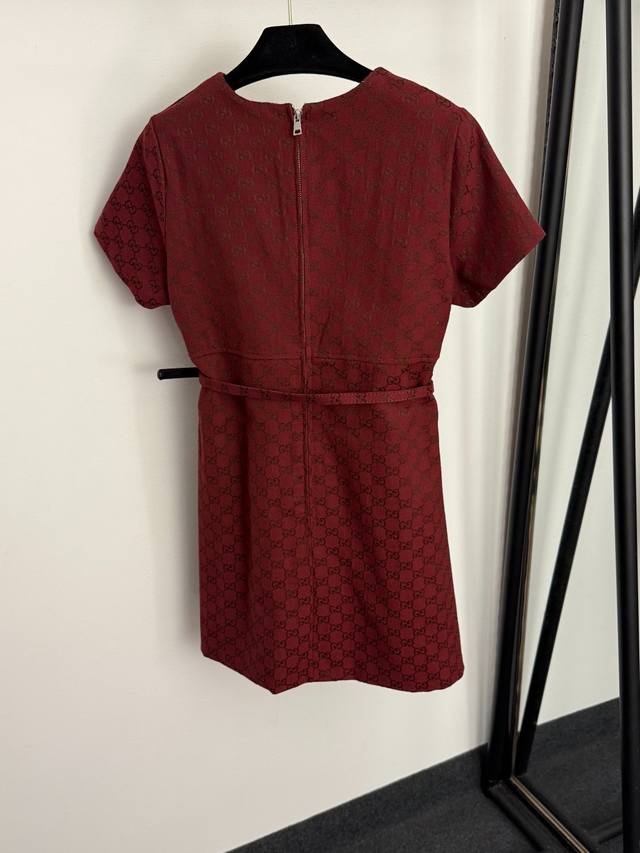 Style No. 20255832 Gucc* new monogram Gg jacquard waist short-sleeved dress with belt, red, Sml, M: shoulder width 37, chest 98, sleeve length 17, length 84; weight: 0.480Kg.