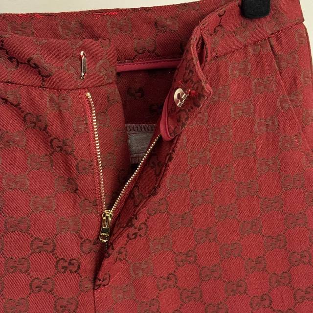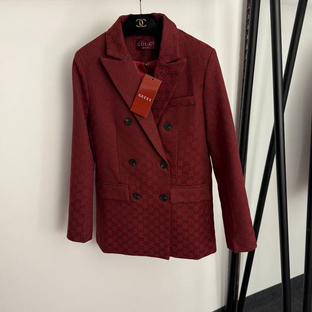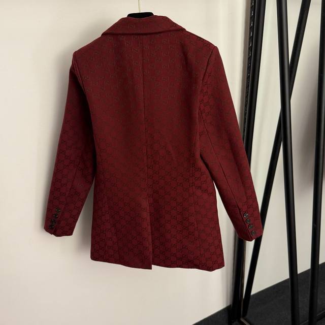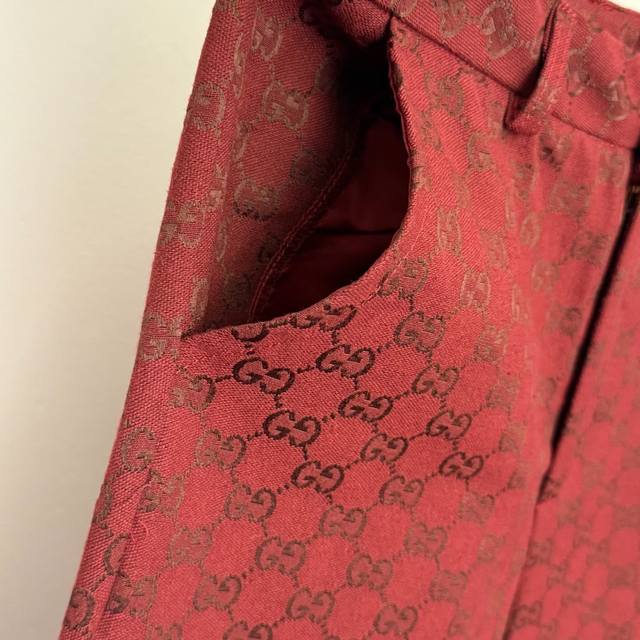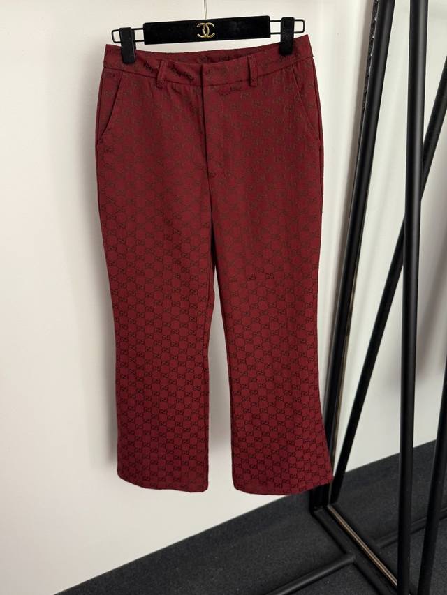 Style No. 20255833 Gucc* new suit, monogram Gg jacquard double-breasted long-sleeved suit jacket + flared trousers, red, Sml, M size: shoulder width 39, chest 96, sleeve length 59, length 72; weight: 0.825Kg; waist 68, length 95; weight: 0.410Kg.