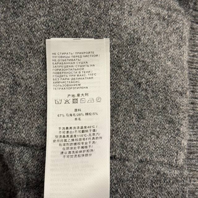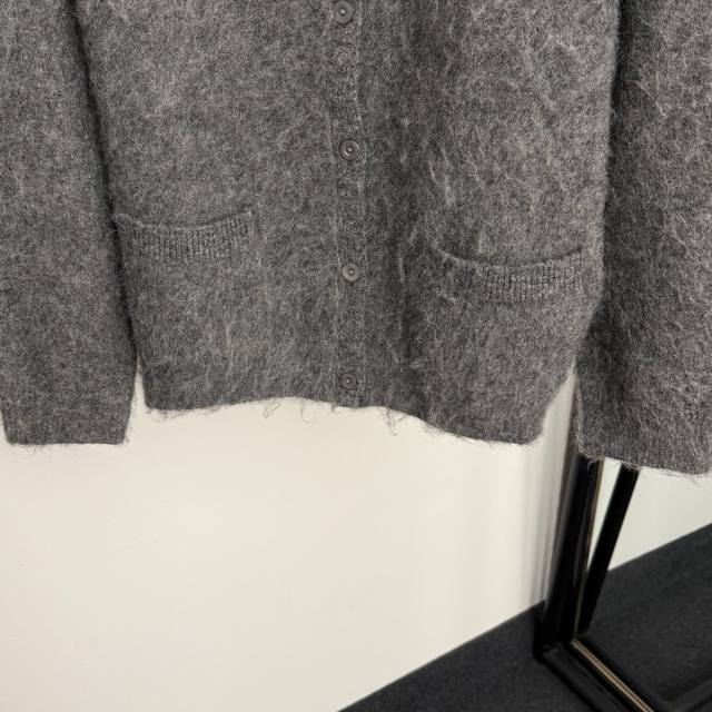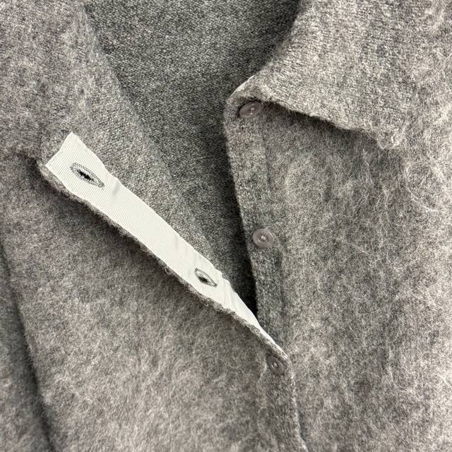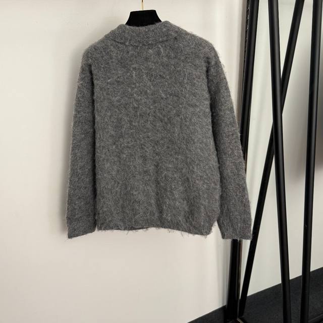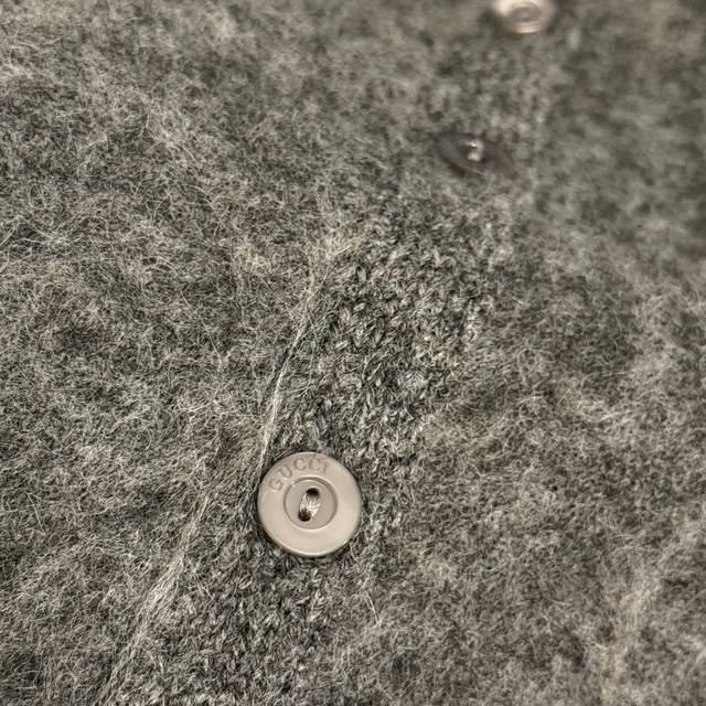 Style No. 20256926 Gucc* New Mohair Collar Long-Sleeve Wool Knit Cardigan Top, Grey, Sizes S, M, L. Size S: Shoulder Width 50cm, Bust 100cm, Sleeve Length 51cm, Length 60cm; Weight: 0.505kg. (