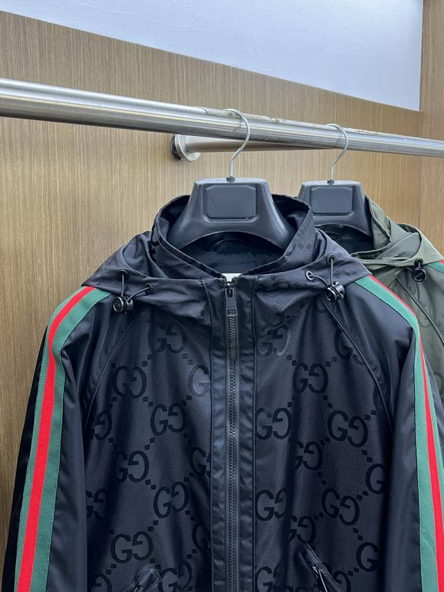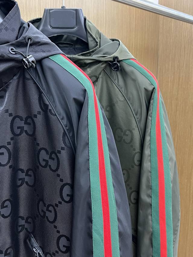 Autumn/Winter Gucci 2530Ss Early Fall New Release: Gucci hooded jacket. Double Gg jacquard fabric with green and red webbing. This fall hit. The grained fleece fabric is comfortable and slimming, creating a lazy and casual look. The Fsh combined with clean and simple colors makes it particularly eye-catching and suitable for everyday wear. We also introduce sportswear pieces embellished with vibrant prints!