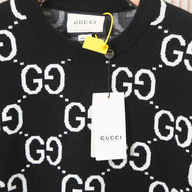 Best-selling Gucci all-over logo knitted sweater with top-notch detailing. The core-spun wool feels very comfortable, soft and silky, and has a great feel. The shape is particularly comfortable and looks great. The color combination is stunning, and the workmanship is super detailed. Highly recommended. Compare the quality to other brands. Don't hesitate to shop around. Same style for men and women.
