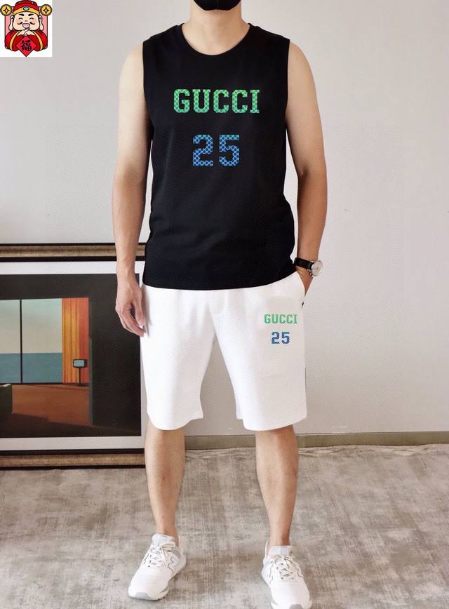 Direct brand Gucci Gucci 2025 Spring/Summer new vest set, classic and simple style, anyone can easily wear it. Imported custom mercerized cotton fabric is soft, comfortable, stylish, sweat-wicking and breathable. The classic brand letter logo design on the chest is luxurious and fashionable. It is a must-have fashion item for foreign trade company orders. Highly recommended! Counter sizes: M ~ 3Xl