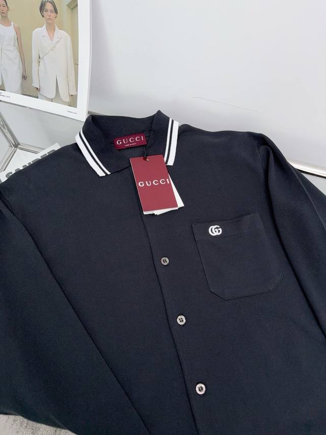 Gu Gucci, the latest fall 2025 collection, available now! Original, stylish, casual lapel long-sleeved top with a distinctive design! Eye-catching and eye-catching, made with imported fabrics and top-quality embroidery, featuring a logo and monogram. Simple yet stylish, classic, comfortable, and breathable, it's a stylish and stylish top. Sizes: S-Xl