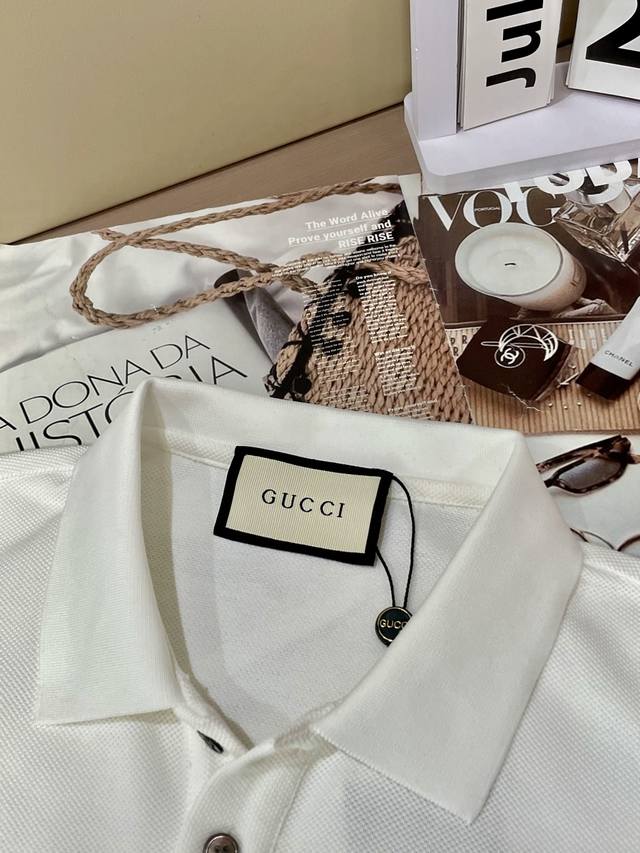 Gucc 2025Ss summer new official website's latest lapel polo shirt, paired with the brand logo, continues the minimalist and normalized design, combining fashion and temperament! The color scheme is light and mature, versatile, and the details are exquisite and outstanding! The fabric is made of imported mercerized pique cotton, selected from the finest long-staple cotton raw materials! The skin-friendly and smooth feel, the perfect combination of comfort and breathability! The fabric properties are all superior! It is full of luxury!