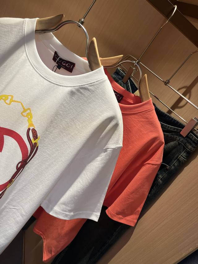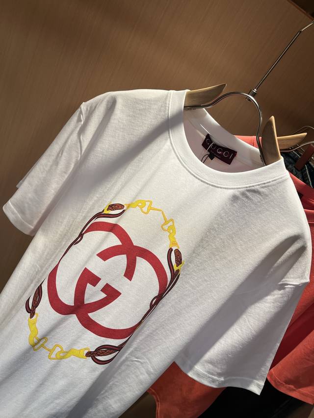 Gucc* 2026 Spring/Summer New Unisex Casual Loose Cotton Crew Neck Short Sleeve T-Shirt! Rarely available from trading company channels, simultaneously released on the official website! From the latest 2025 Spring/Summer collection, classic and fashionable design elements inject vitality into the new series. This T-shirt is made from carefully selected imported 100% cotton fabric, which is soft and delicate against the skin. The logo is taped to the seam. It offers an incredibly comfortable and breathable wearing experience. This piece is highly eye-catching and fashionable, and is loved by today's young people! The basic loose crew neck cut is a unisex style suitable for all ages and genders, perfect for matching with any style and look you need! We recommend wearing it as a couple's outfit for a more stylish and eye-catching look! Sizes: S-XL DDD