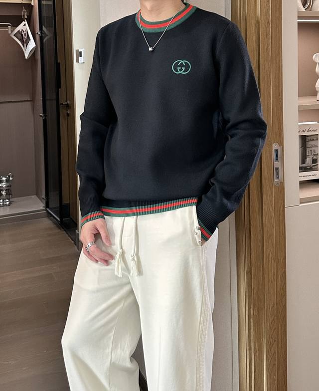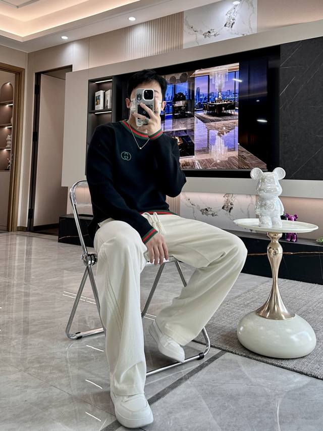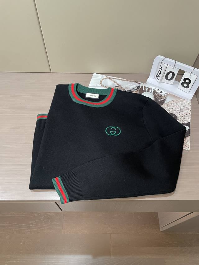 Gucc Highly Recommended! 2025 Autumn/Winter New Arrival, Classic Fashion Knitwear, a Must-Have for Autumn and Winter. This thick knit sweater is exquisite, simple, and elegant, adorned with brand elements. The design doesn't rely on overly complicated craftsmanship; it's all about the fusion of design and materials. A minimalist European style, an essential for autumn and winter! Sizes: M-3XL