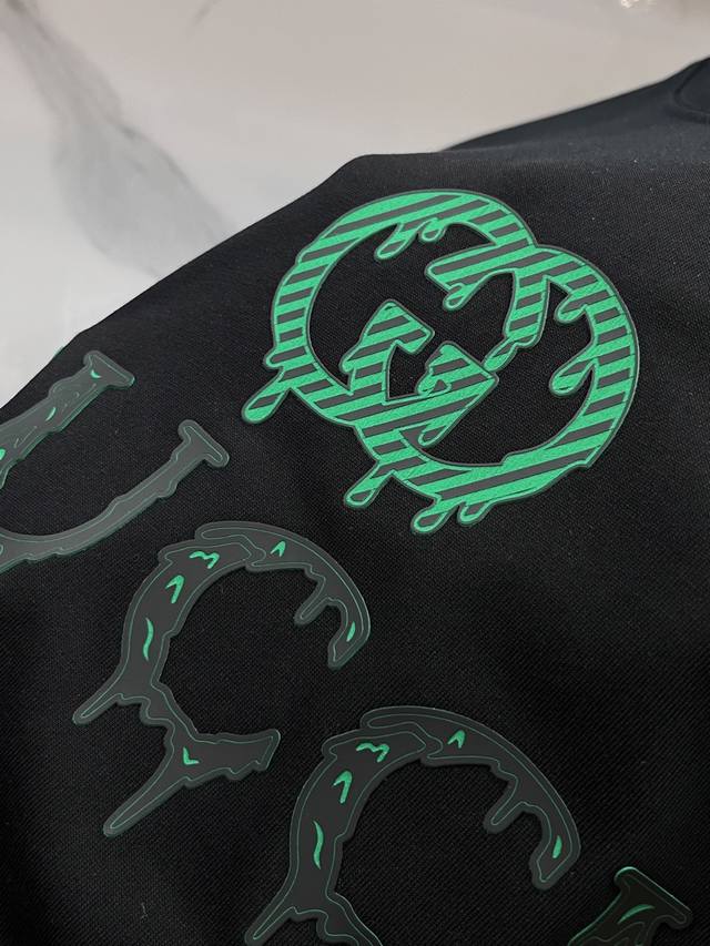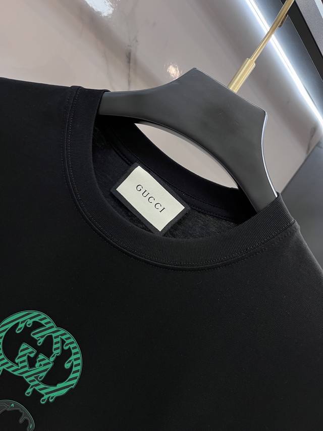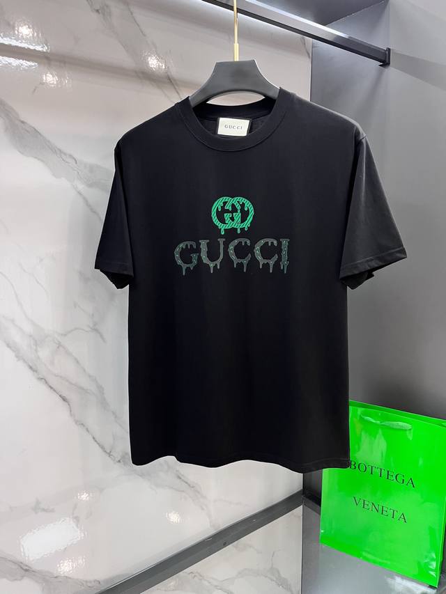 Gucci 2025 early spring newest product, on sale simultaneously, original single hot goods, fashionable and casual round neck short-sleeved T-shirt, comfortable to wear! Eye-catching and bright, made of imported original fabrics, top-grade printing and embroidery letter pattern logo, simple yet fashionable, stylish and handsome on the body